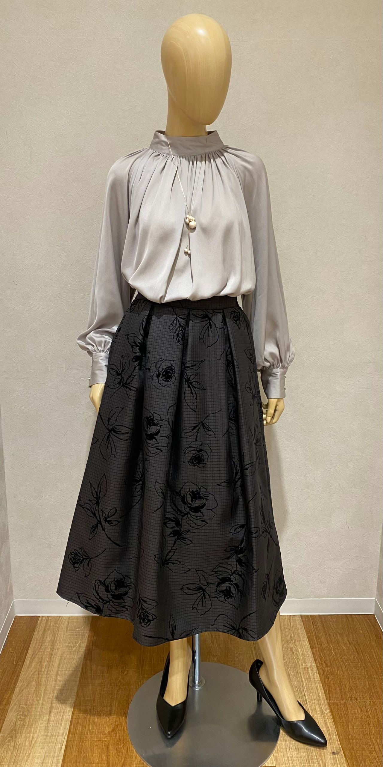 チドリ+バラ柄フロッキースカート