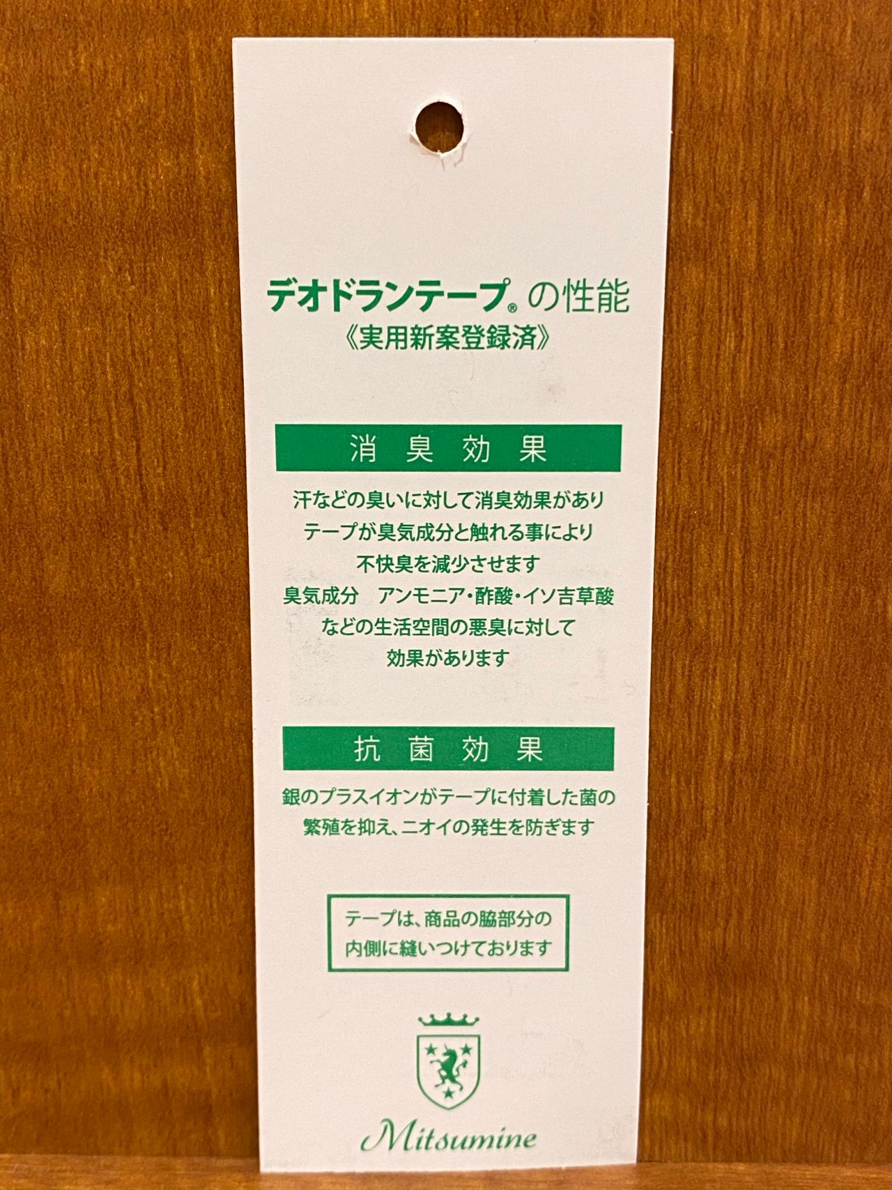 Mitsumineのカジュアルシャツの多くには、脇部分の内側デオドラントテープが縫い付けてあります。