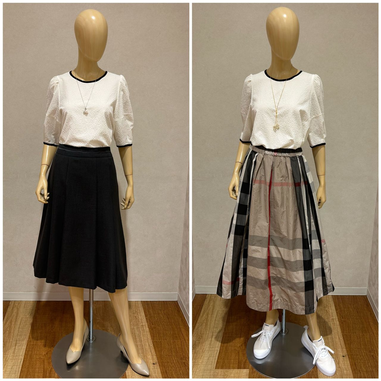 同じブラウスで2パターンのコーデをご紹介しましたが、