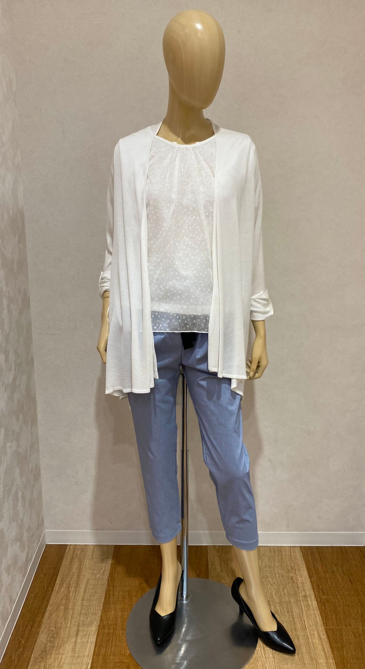 ブラウスやカットソー、カーディガンとの合わせでもとても使いやすいですね!♪