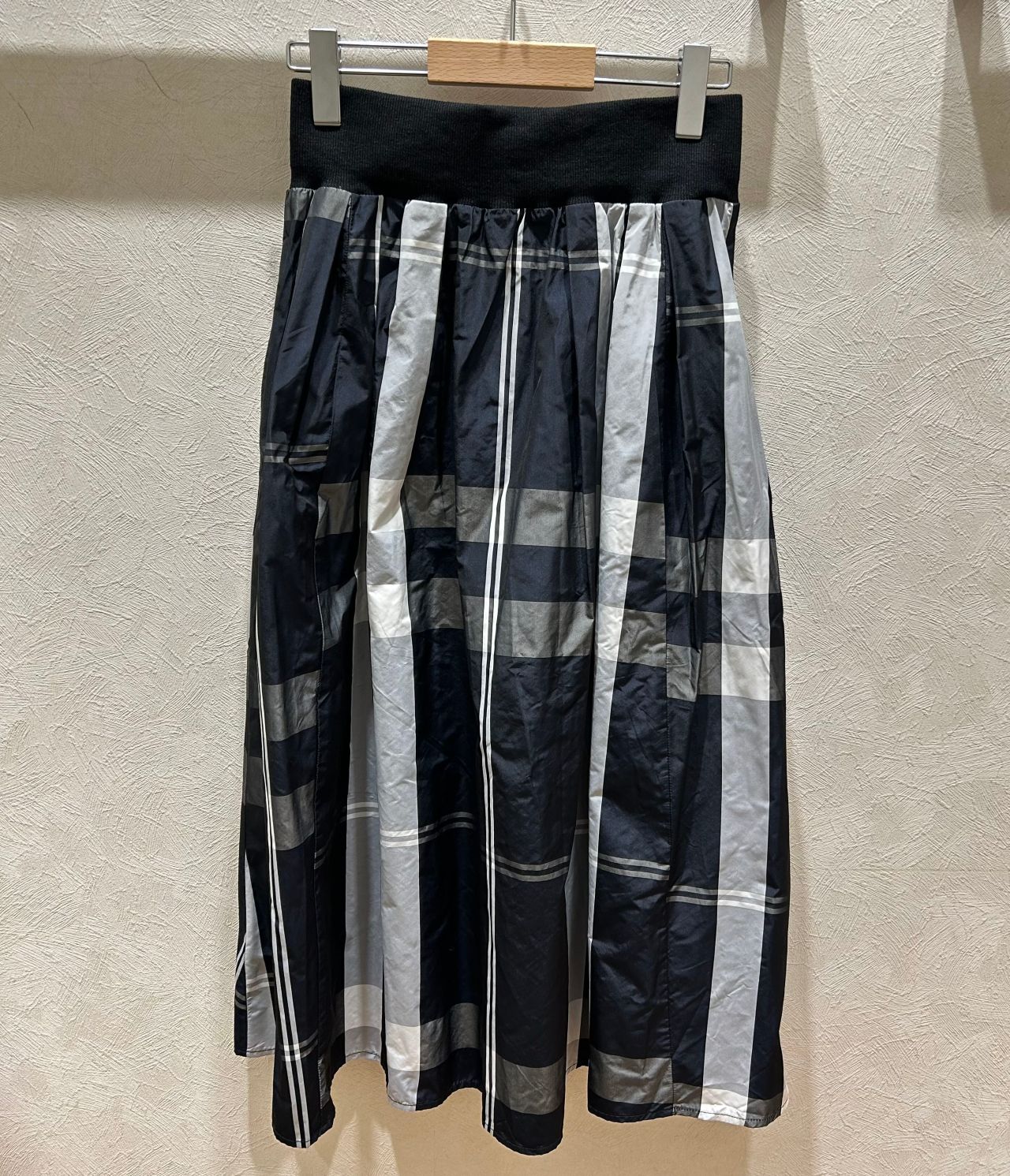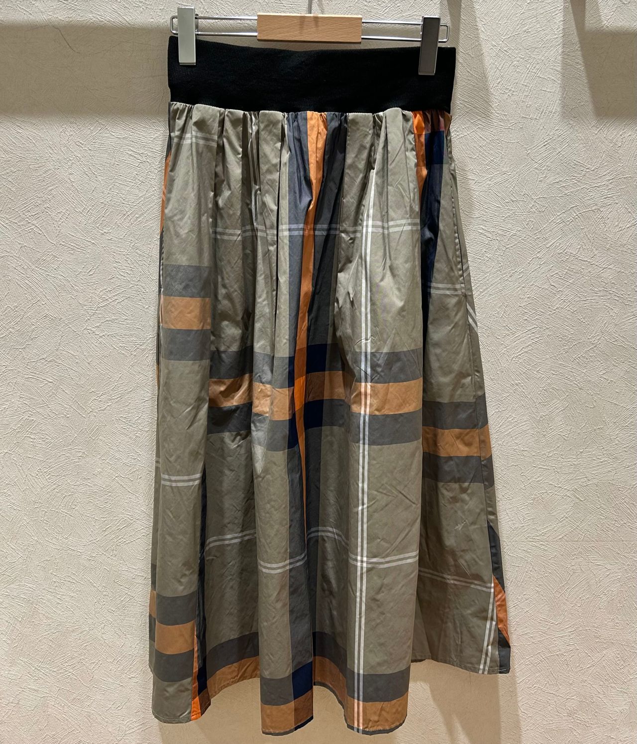 大きなチェック柄が目を引くスカートです。