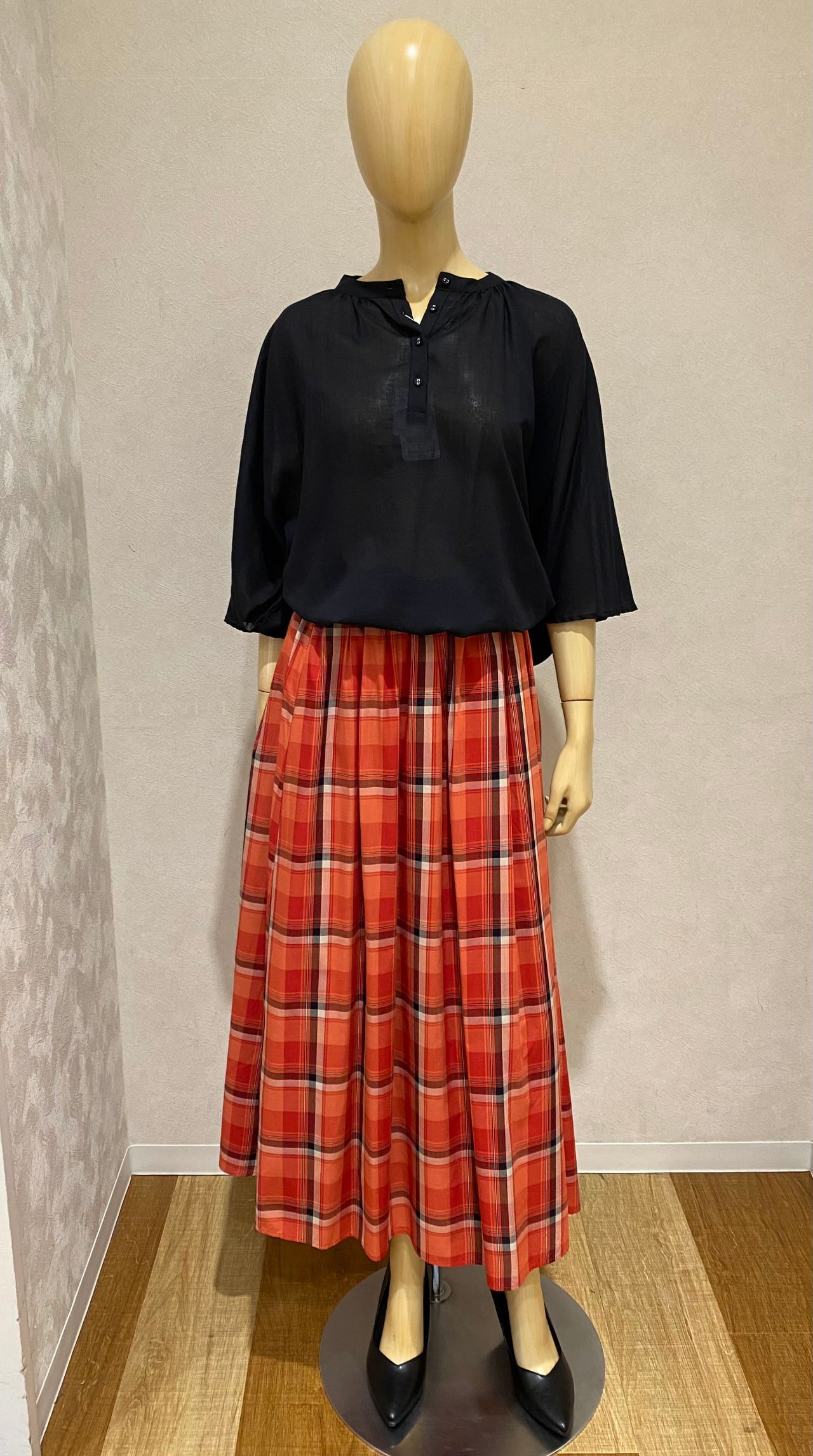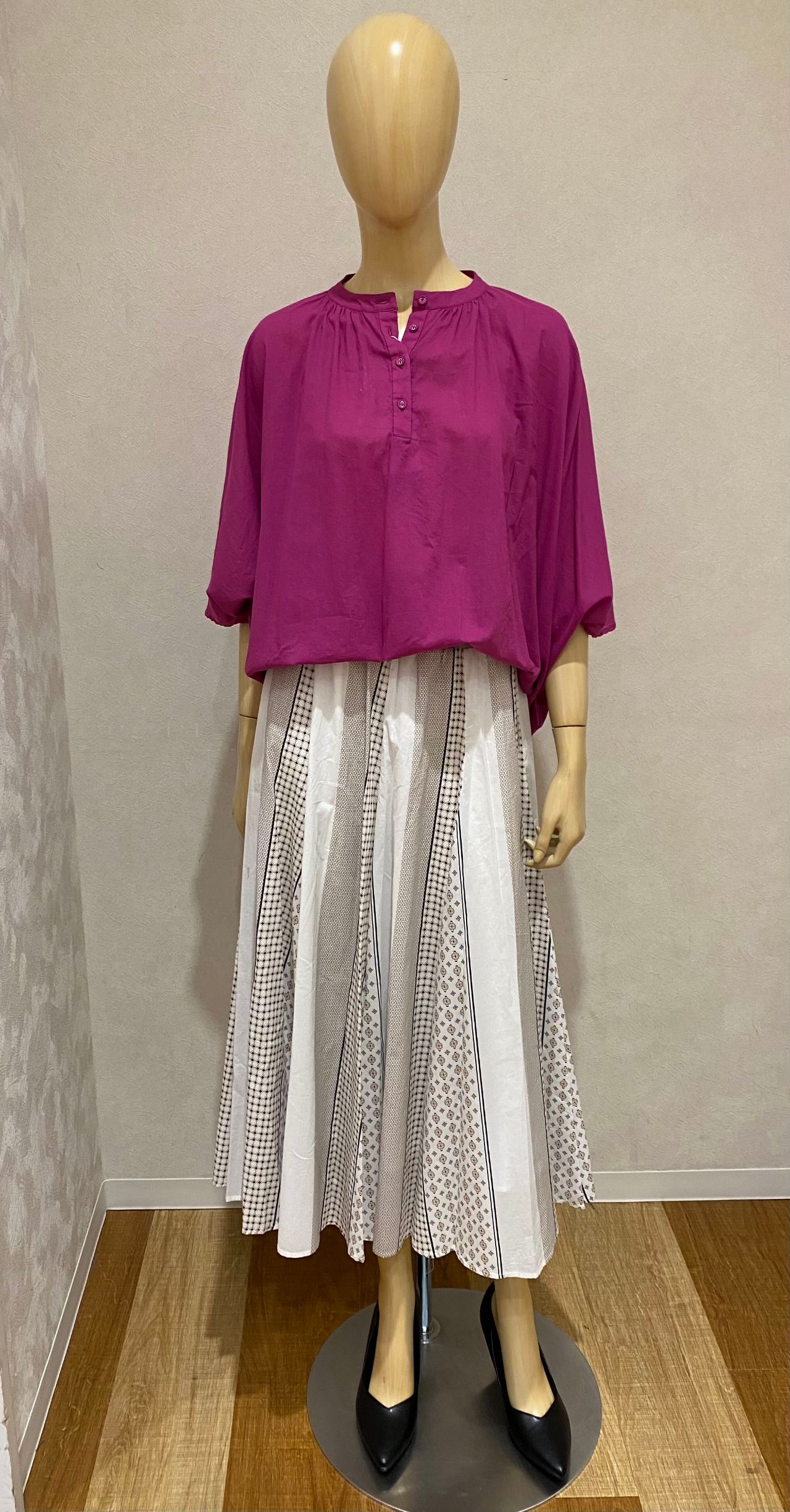パンツ、スカートともに合わせやすいシルエットのブラウスですよね!♪