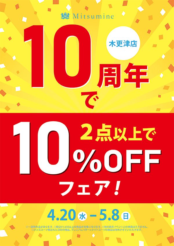 5/8(日)まで10th Anniversary SALEを開催しておりますので、夏物商品もお買い得となりますので、ぜひ、木更津店にお越し下さいませ。