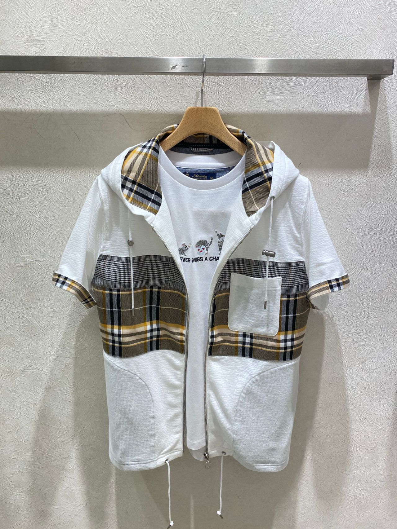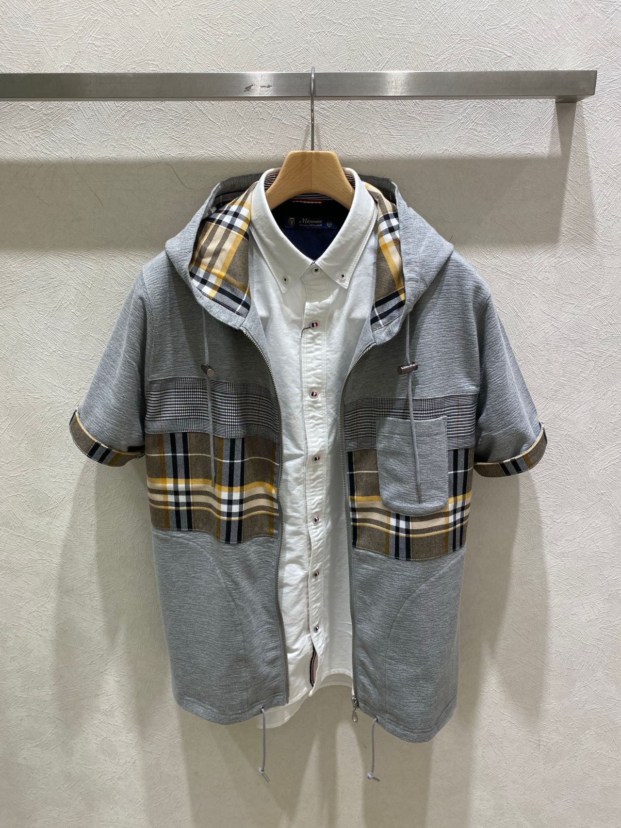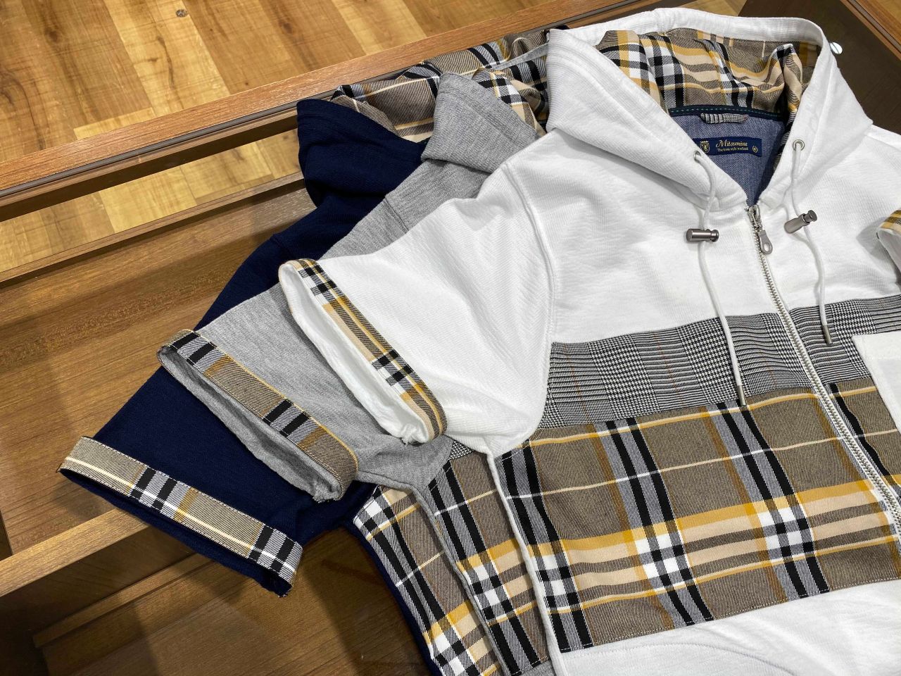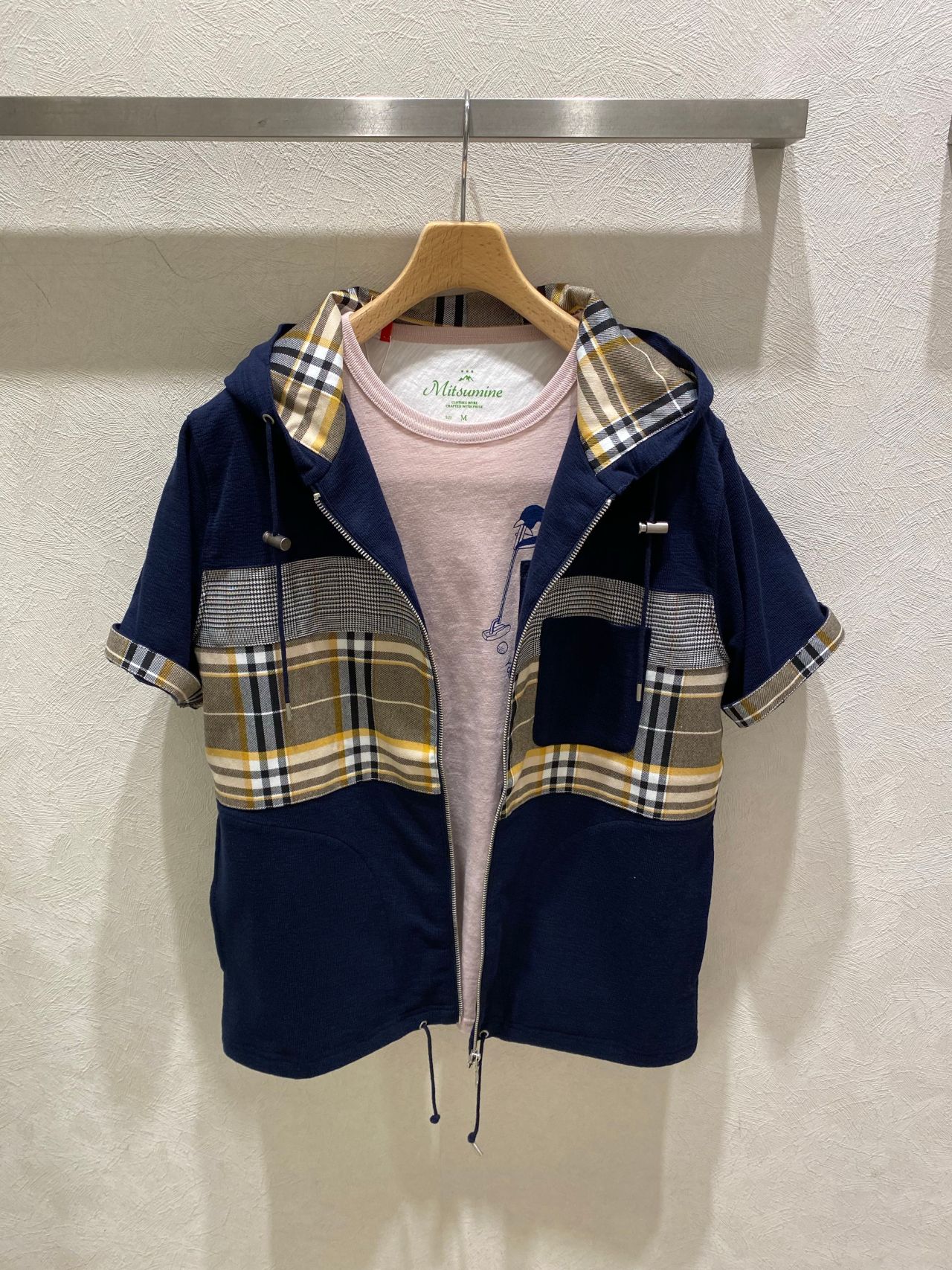 袖口部分を捲っていただくと切り替えのチェック柄が見えてきます。