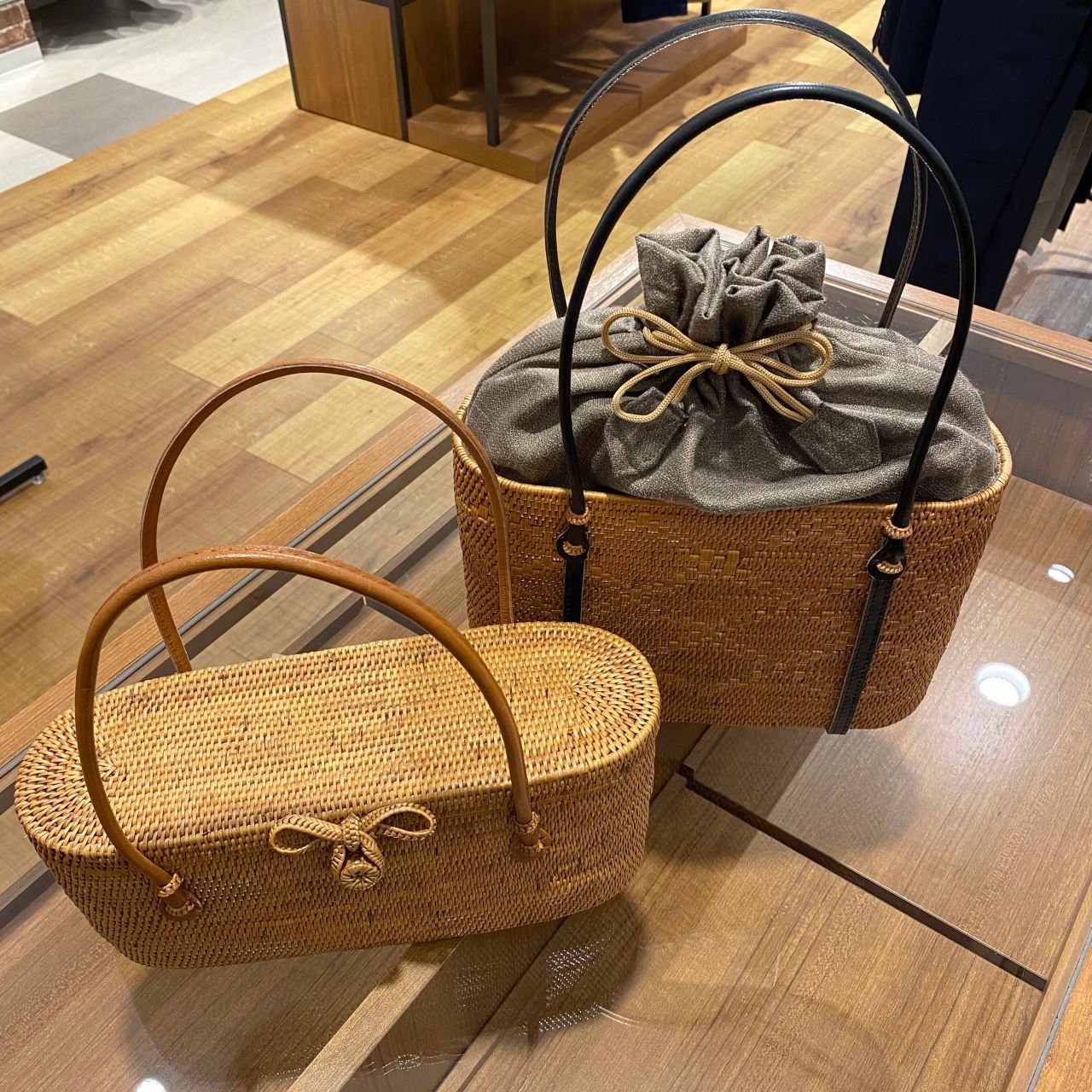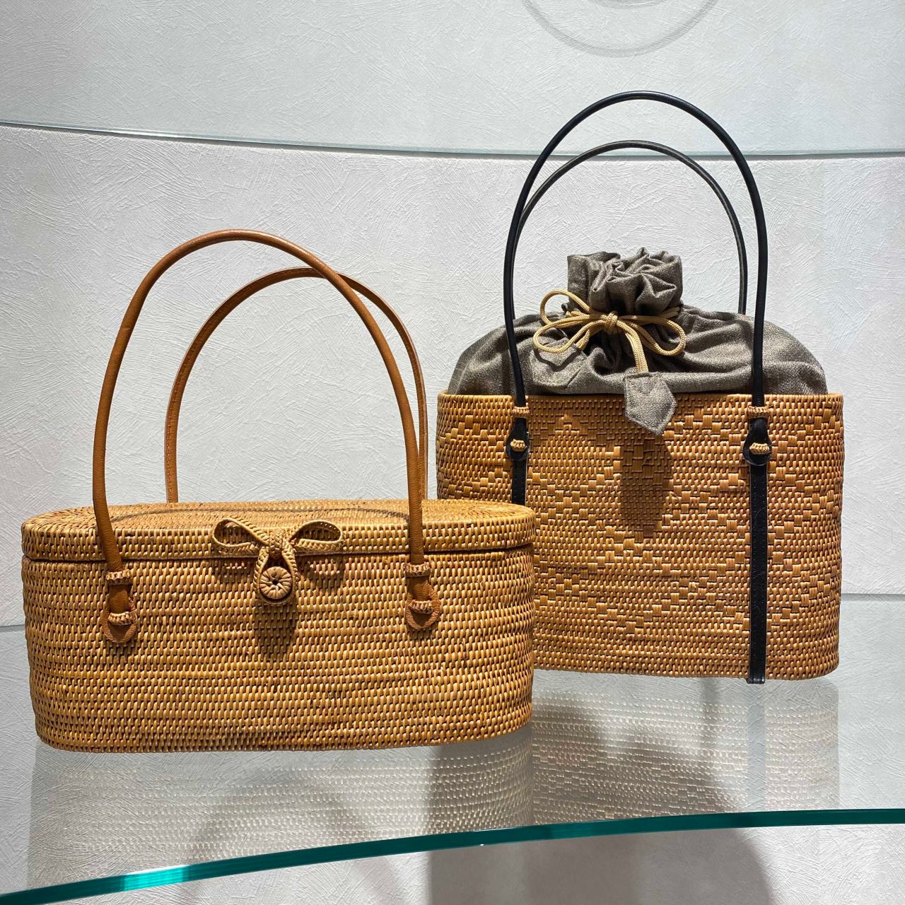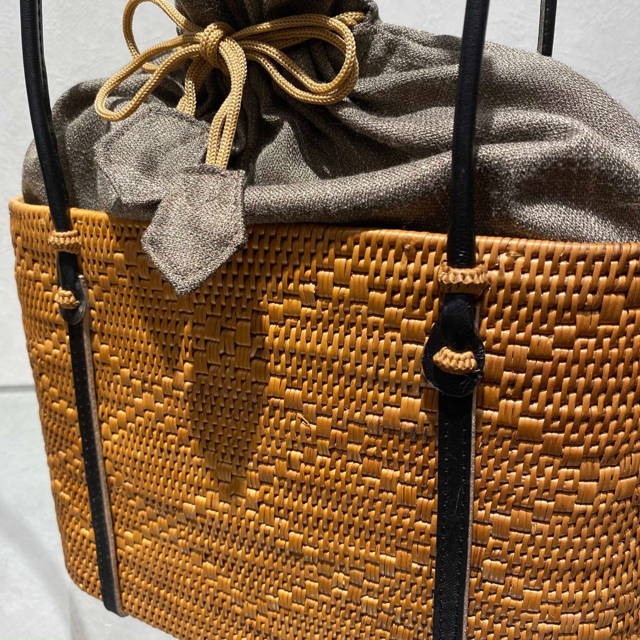 楕円持ち手革 巾着付 (右)