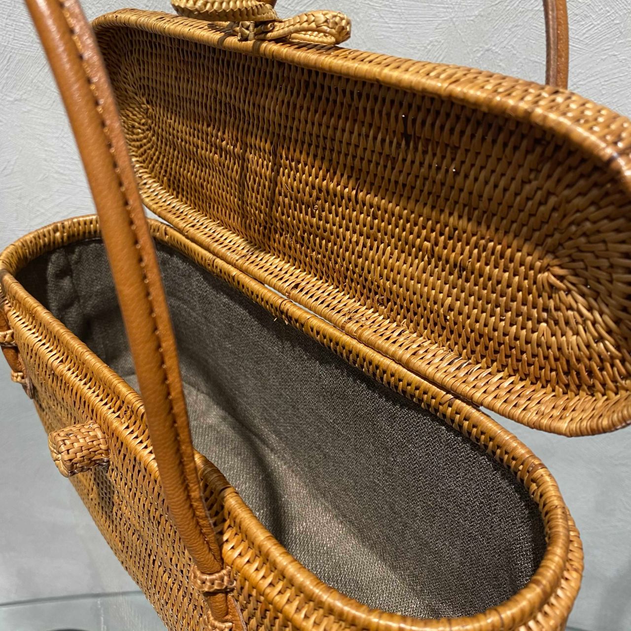 楕円持ち手革 アタ蓋付(左)