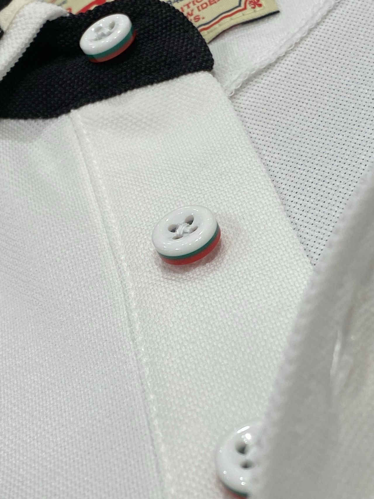ボタンにもこだわりがあり、正面からは見えないのですが角度を変えると、白、緑、赤の切り替えのお色が見えるのでさりげないおしゃれを楽しめるデザインになっております。
