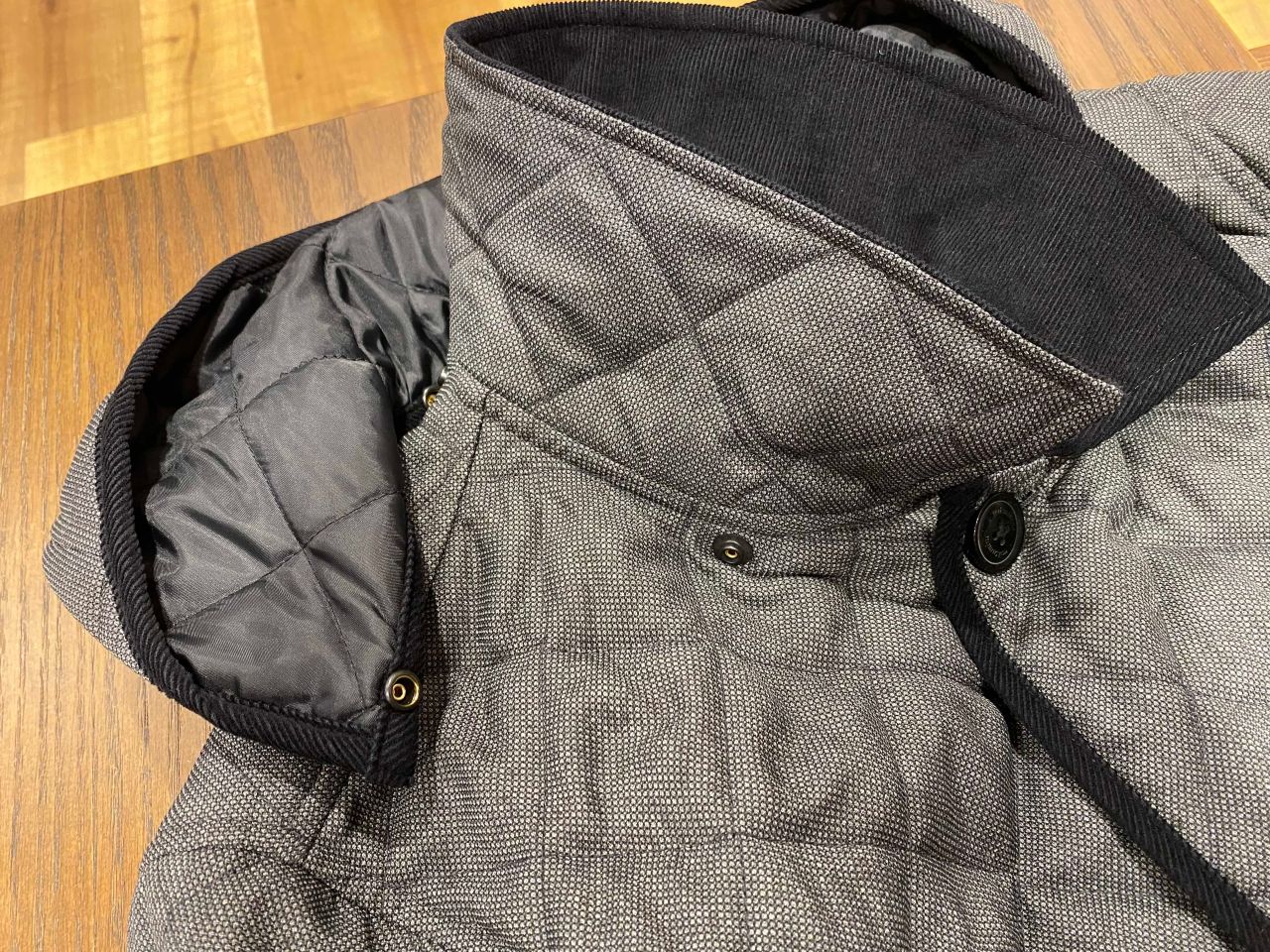 フード部分がスナップボタンになっているので着脱可能です。お仕事シーンや普段使いもできます。