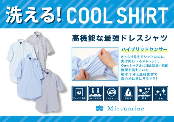 また、形態安定加工で、伸縮性、通気性、吸水性、速乾性に優れた機能的なシャツなっております!