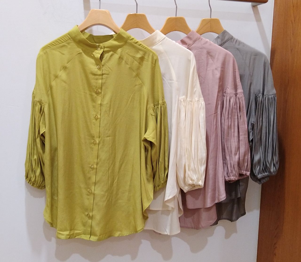 2WAY スタンドギャザー袖ブラウス