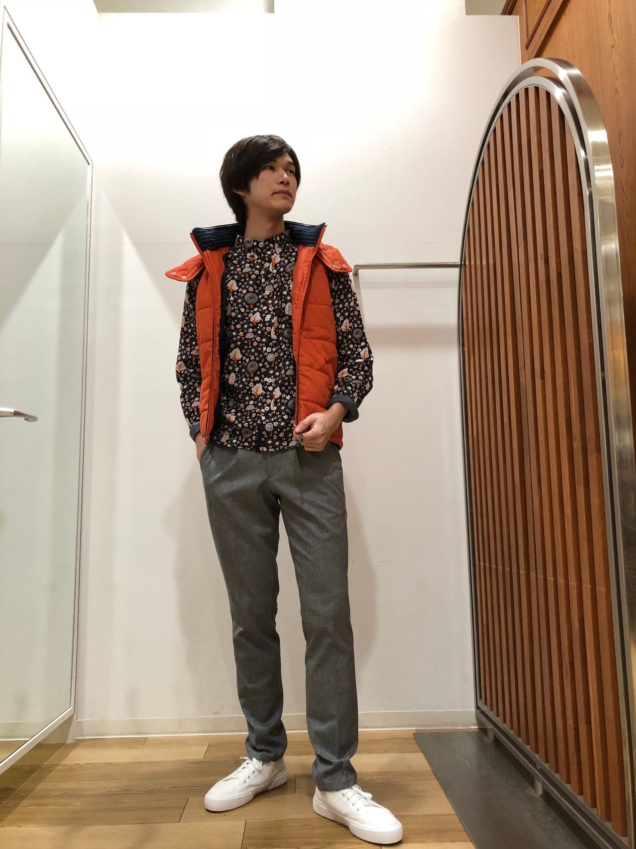 色味の良いベストにポップテイストなシャツを