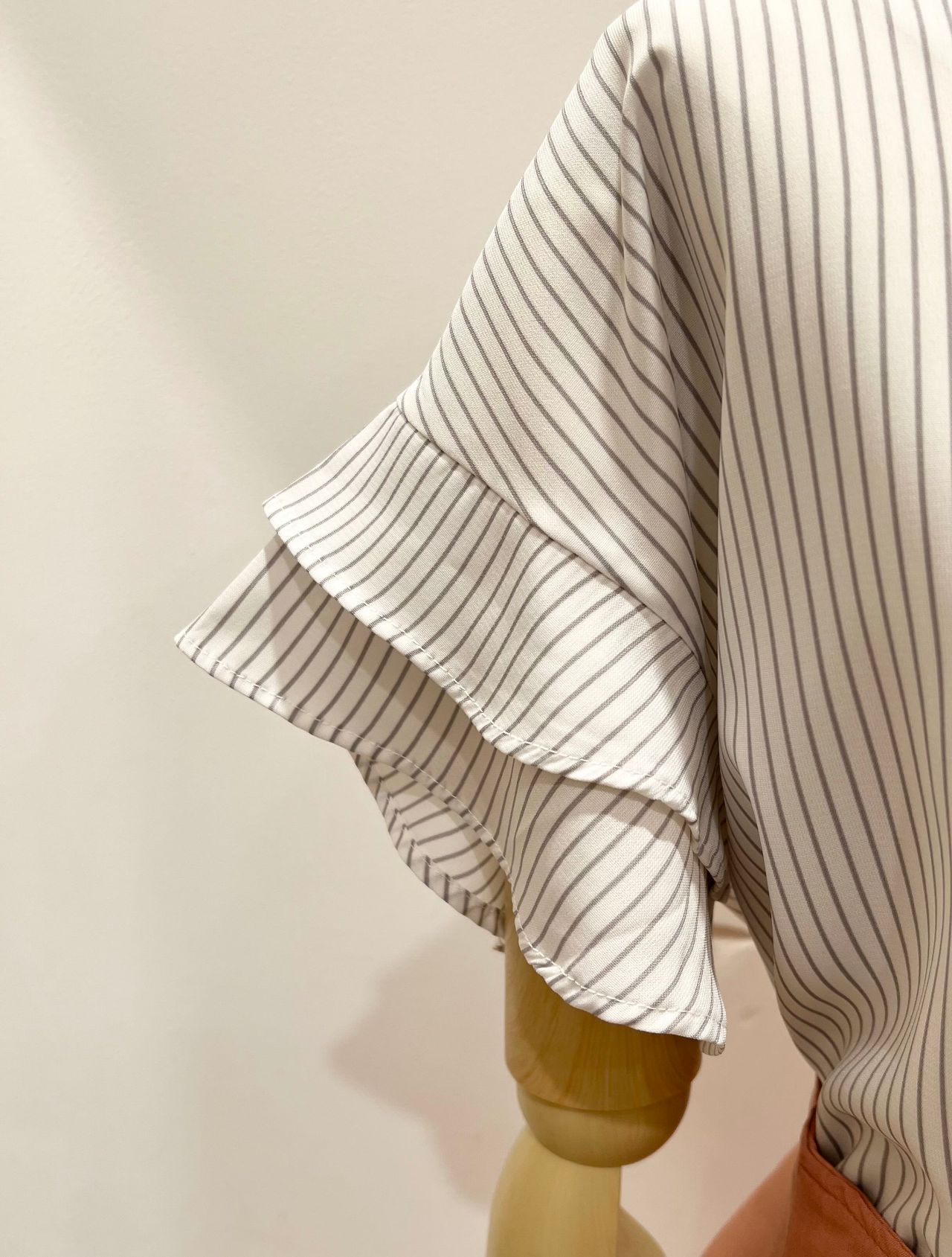 ストライプ ティアード袖ブラウス