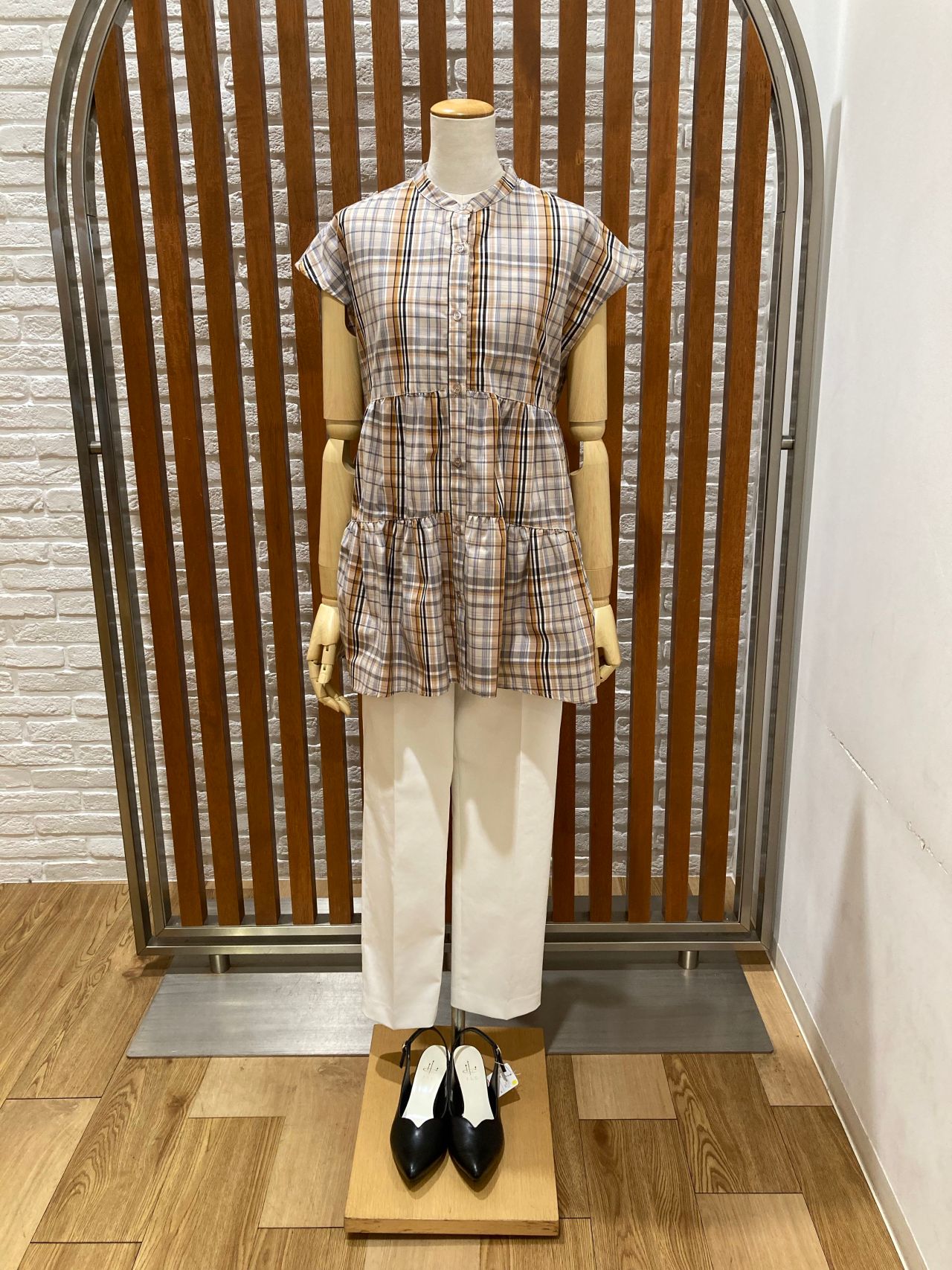 チェック ティアードチュニックブラウス
