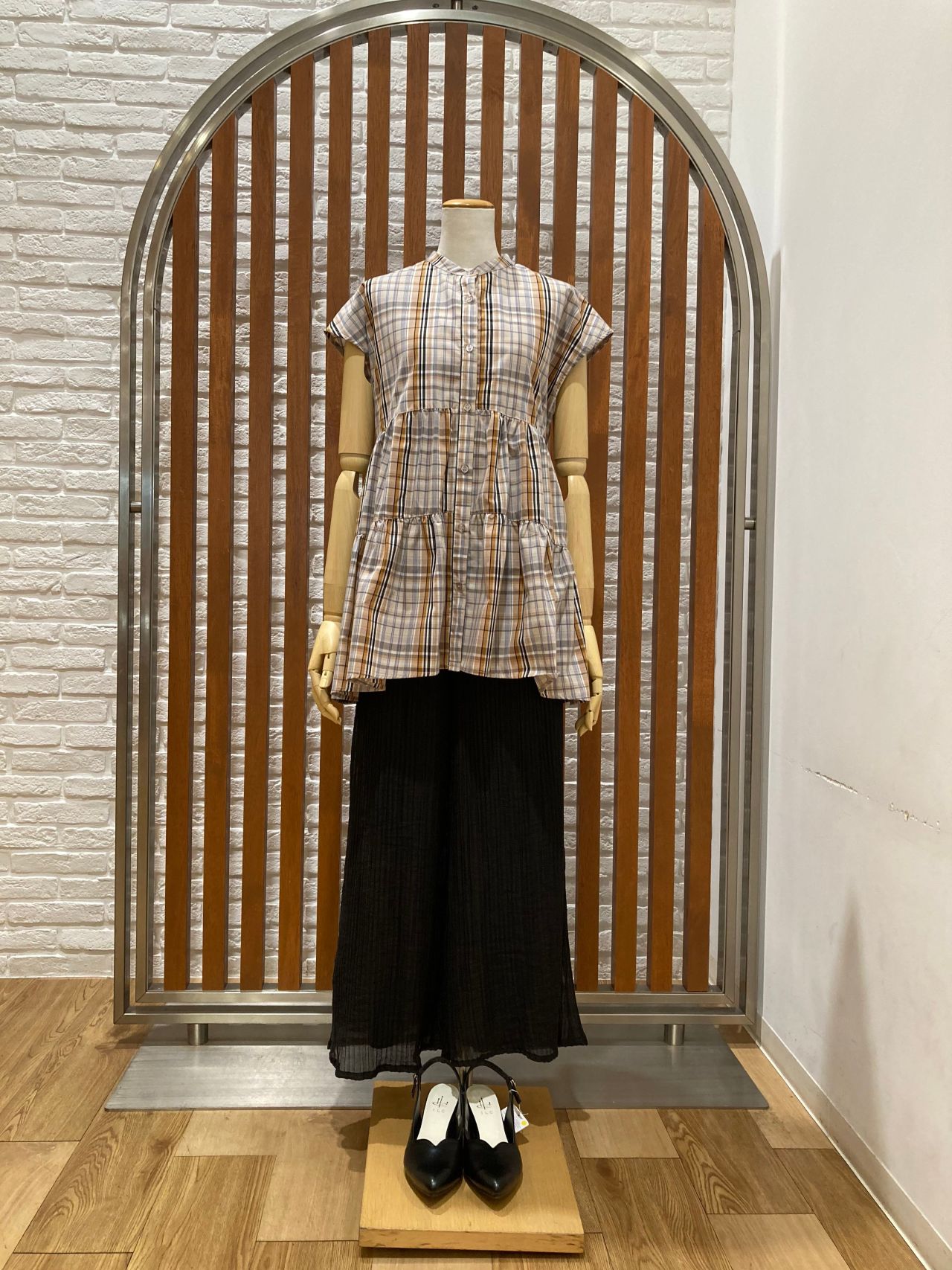 今流行りのティアードのチュニックブラウスです!落ち着いた色目なので秋の初旬まで着られます!