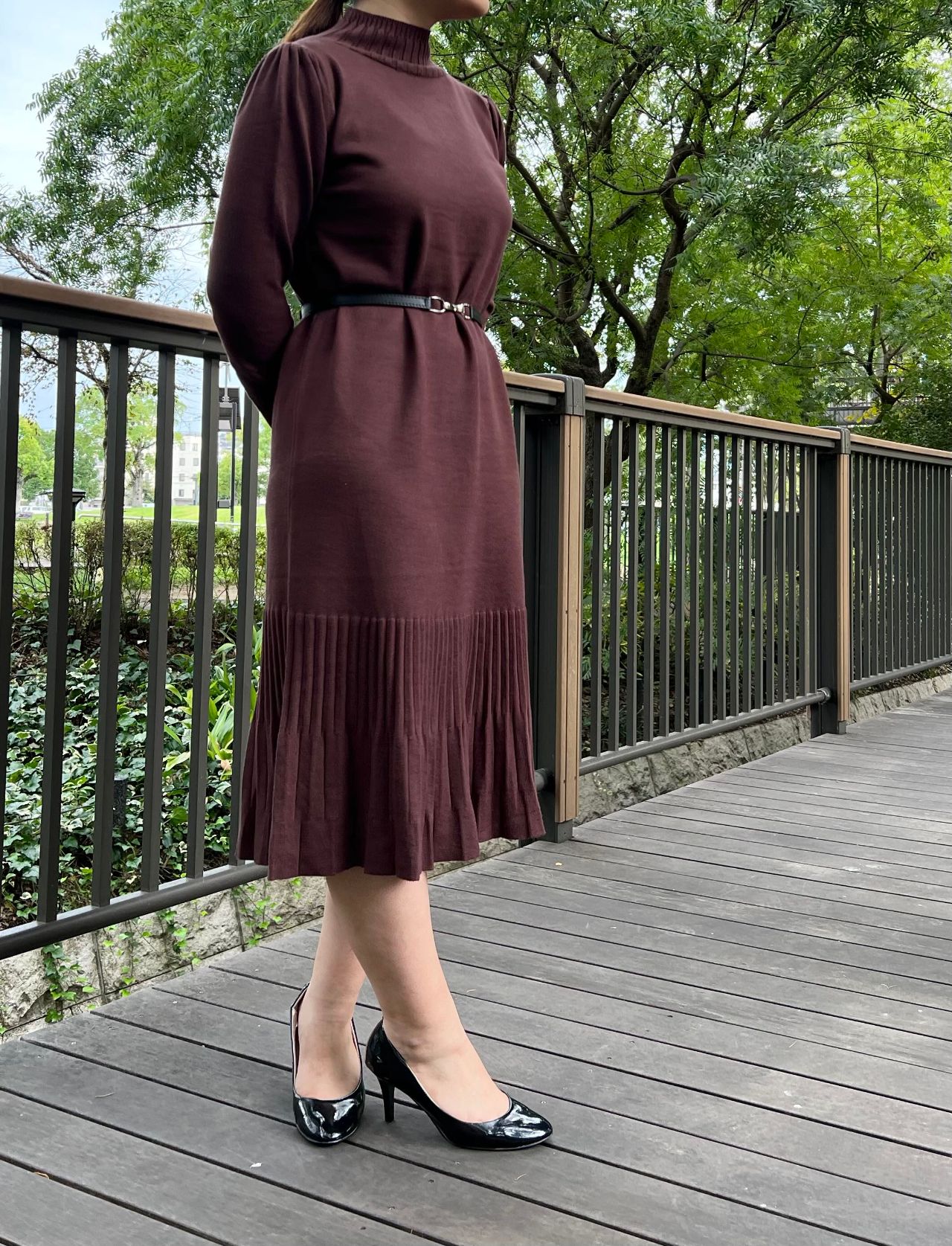 ハイネック裾フレア ニットワンピース