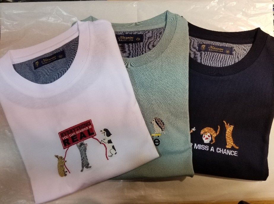 胸の部分の動物は全て相良(サガラ)刺繍になっているため、立体的に絵が出るようになっています。