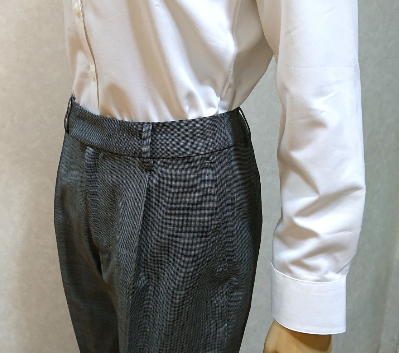 テーパードパンツはタックを入れ例年より股上が深めになっています。