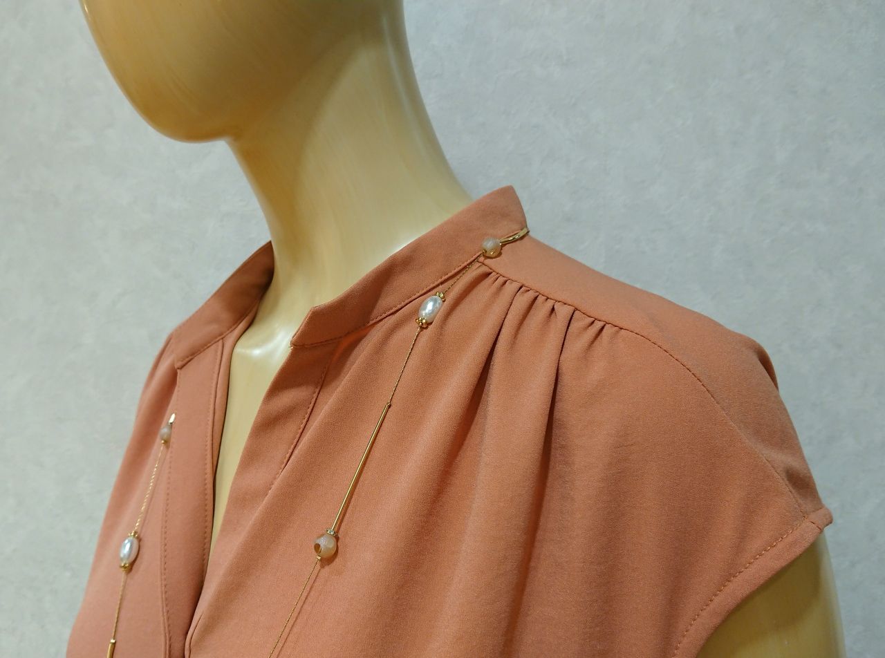 肩ギャザーの繊細さとドレープの柔らかさ。