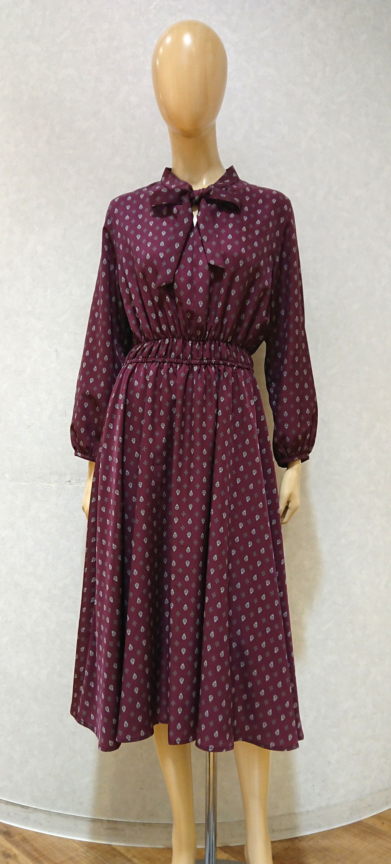 ネイビーワンピースの柄はプラム色