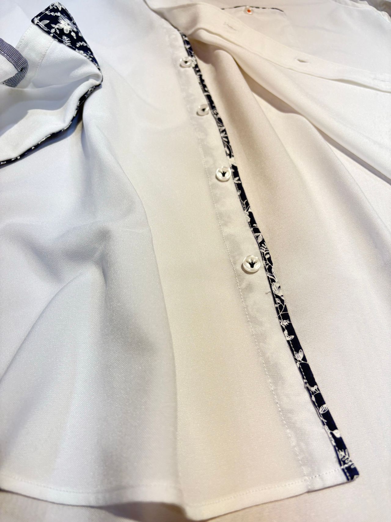 七分袖ですので程よい気温の今の時期から夏終わりまで活躍間違いなしの一枚です。