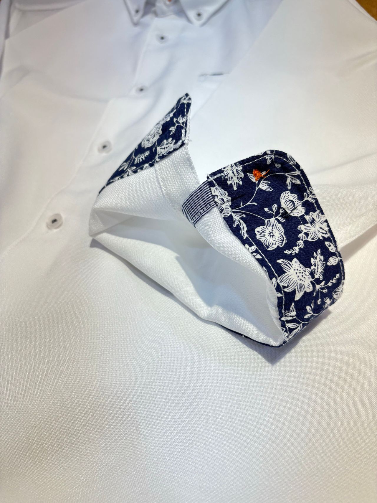袖を捲っていただくとアロハ柄が見えてより季節感のある雰囲気に。
