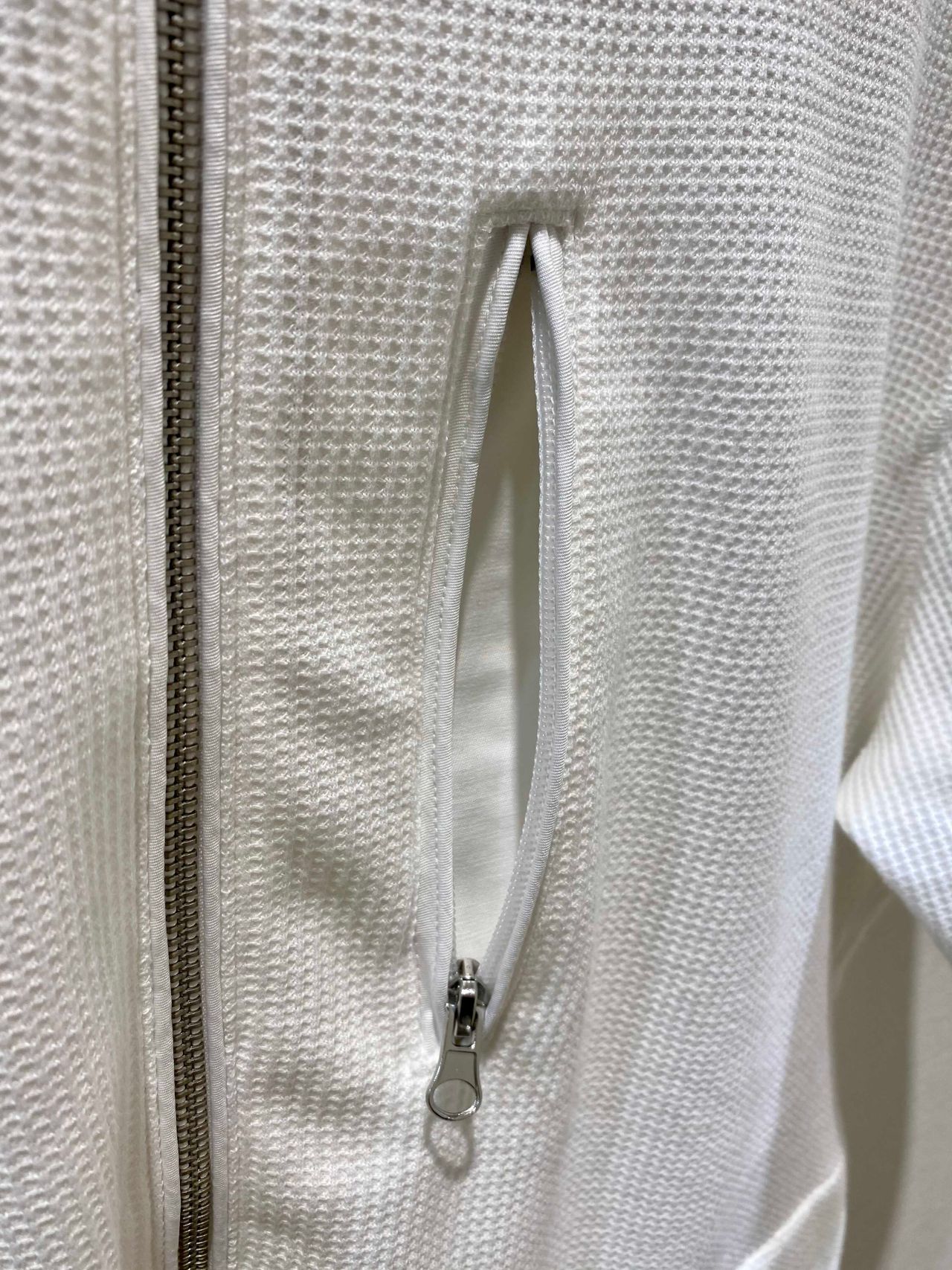胸元のポケットはチャックになっており、鍵やスマートフォンなどといった
