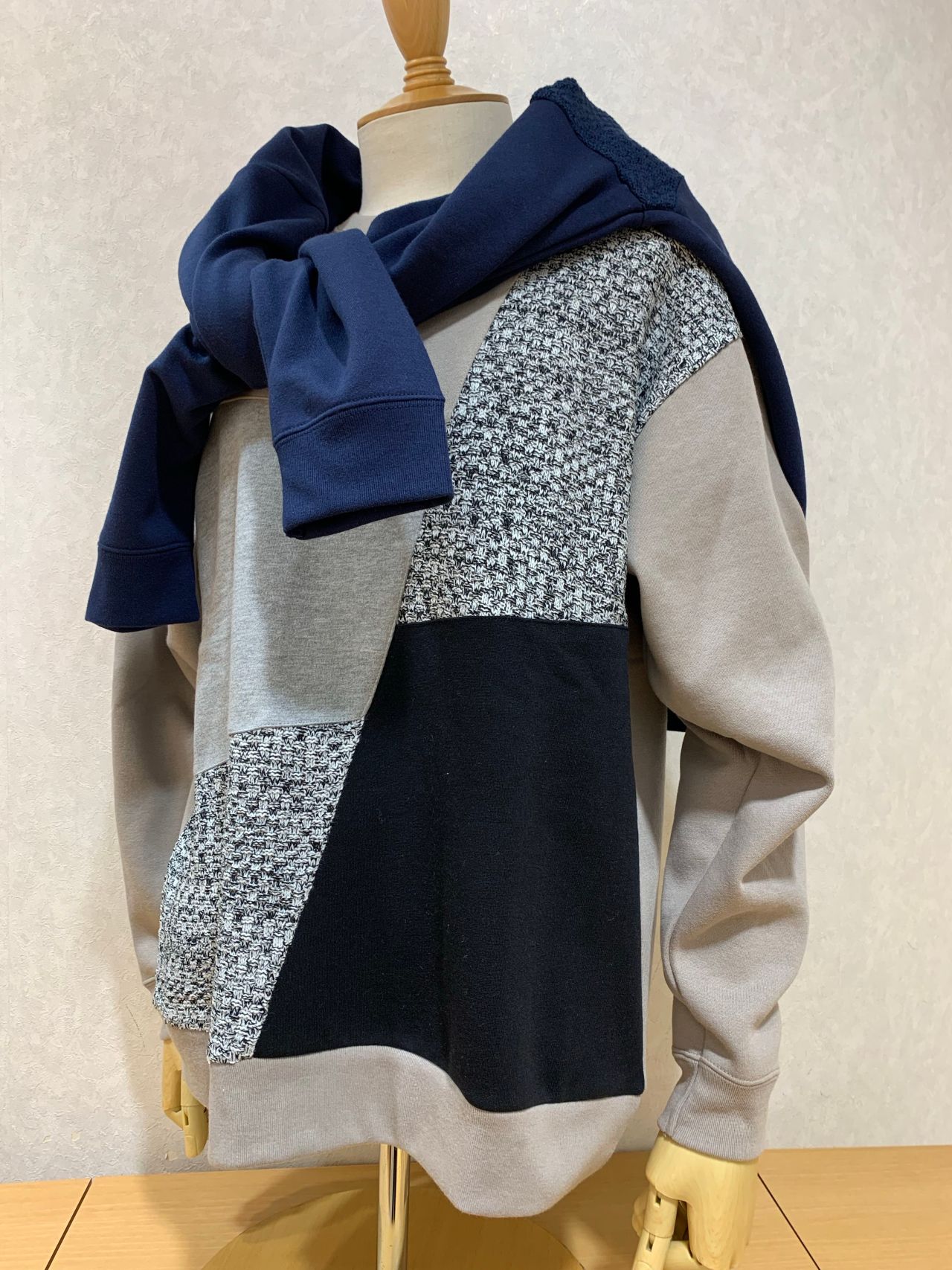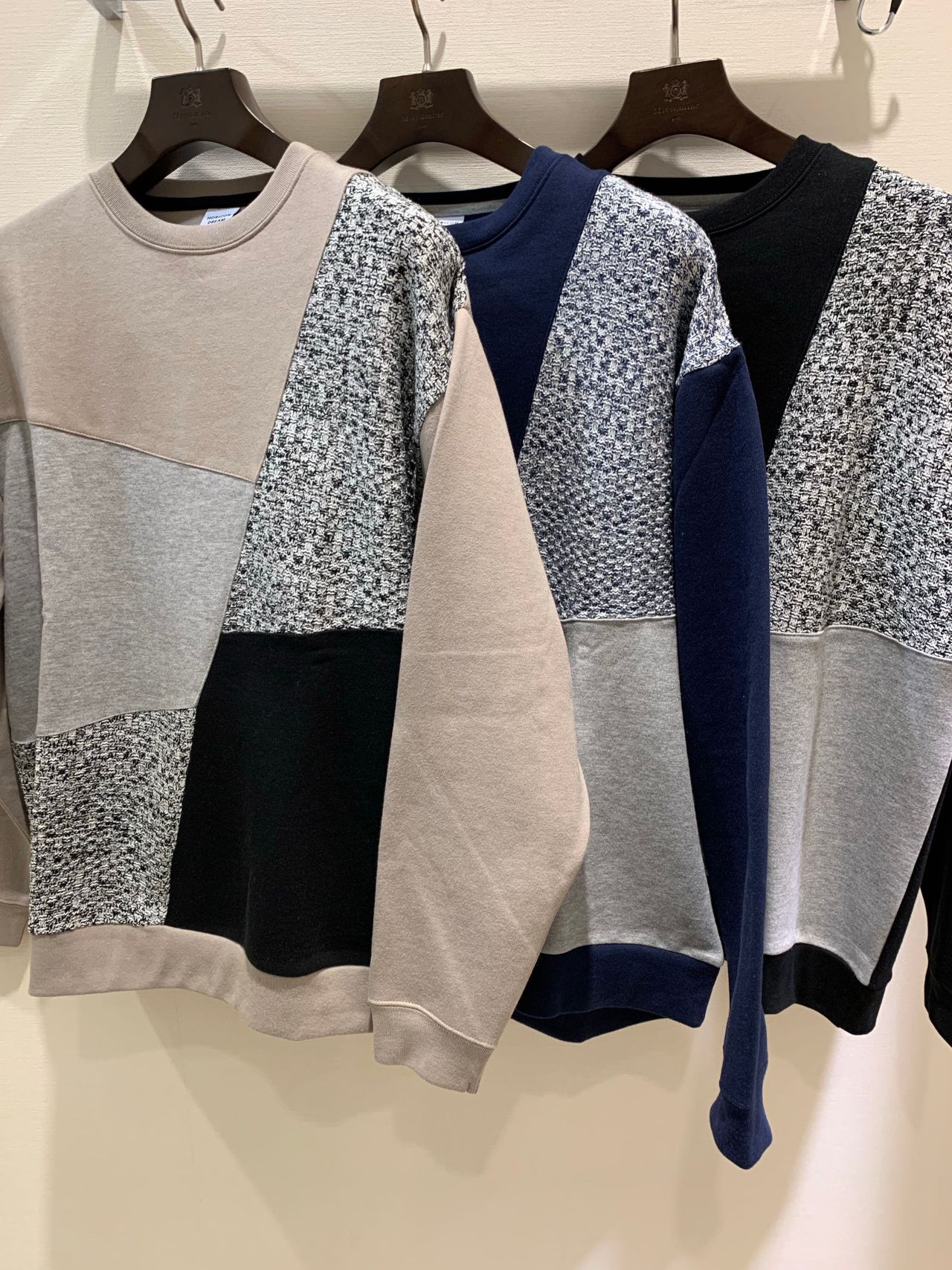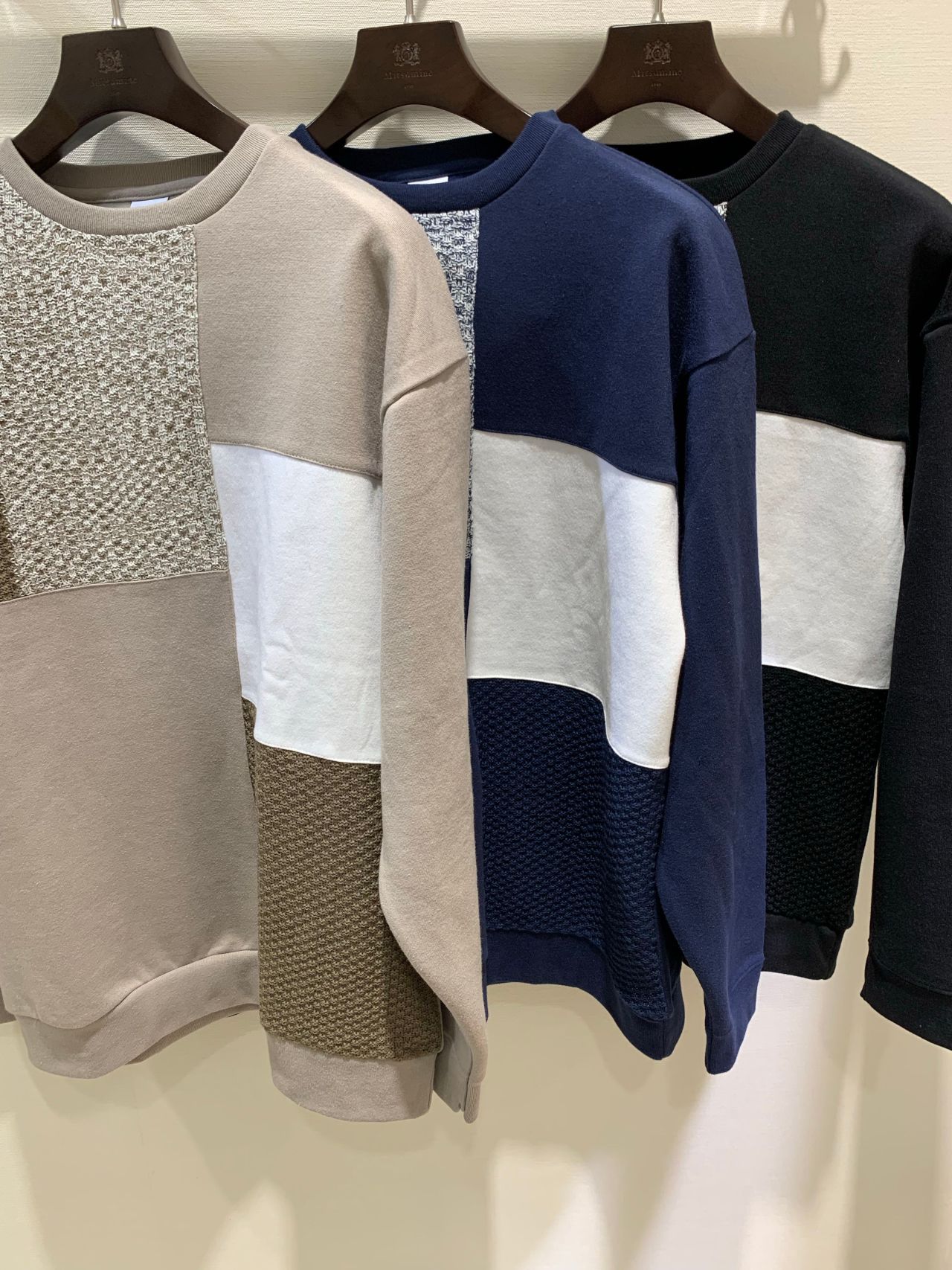 ニットブロック切替違いのデザインで2型になります。サイジングも若干ルーズな作りになっていますので、シルエットが、今っぽいゆる〜い感じになります。