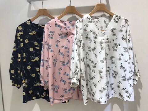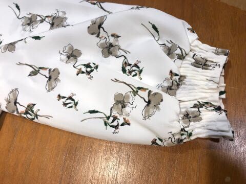 花柄Vタックシャーリング袖 ブラウス