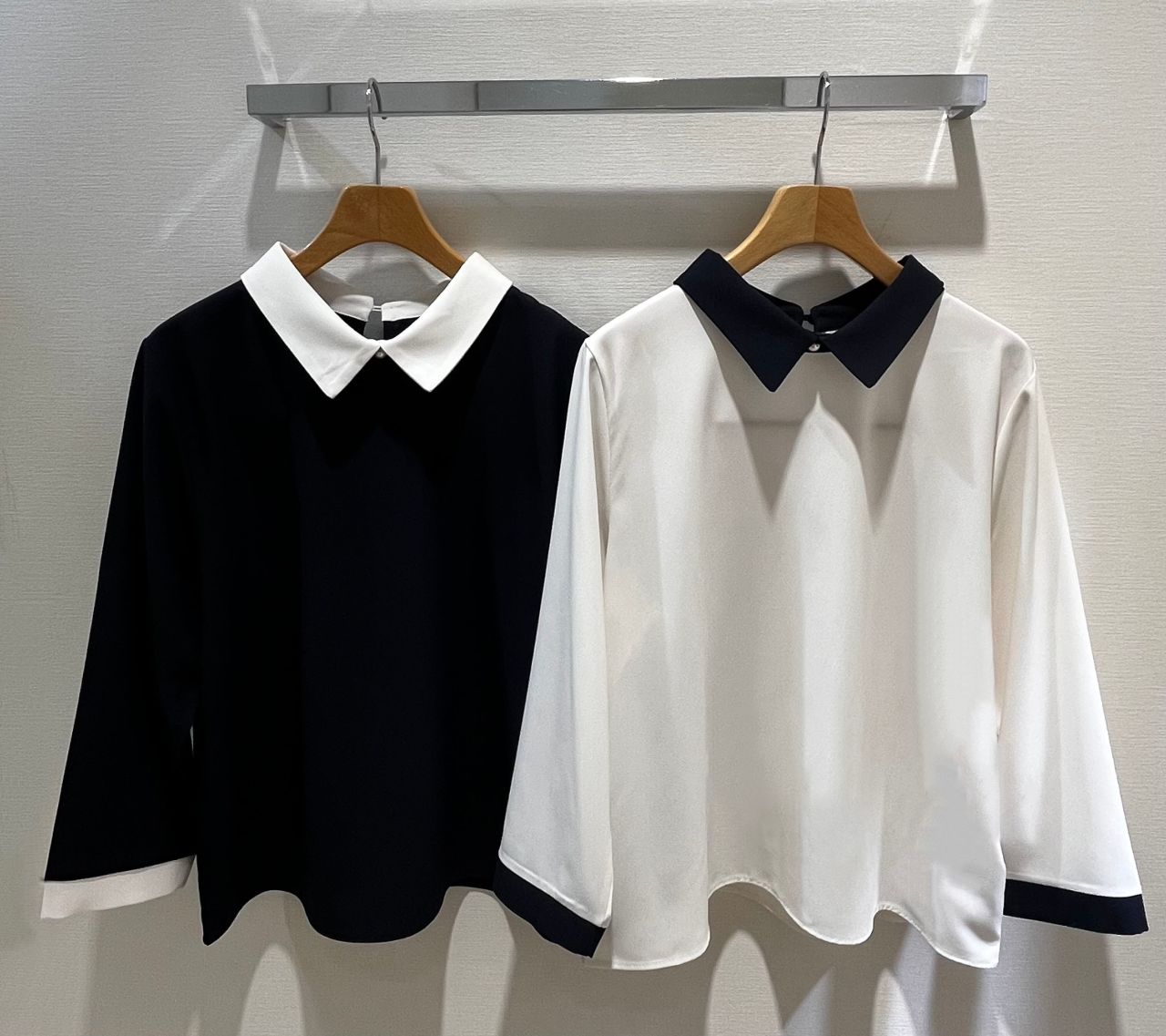 人気の襟付きバイカラーブラウスです!