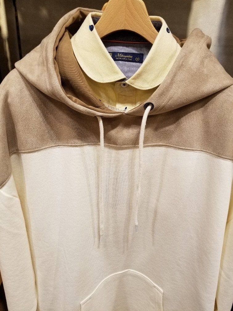 肩の部分は、フェイクスエード(ポリエステル90% ポリウレタン10%)を用いているので