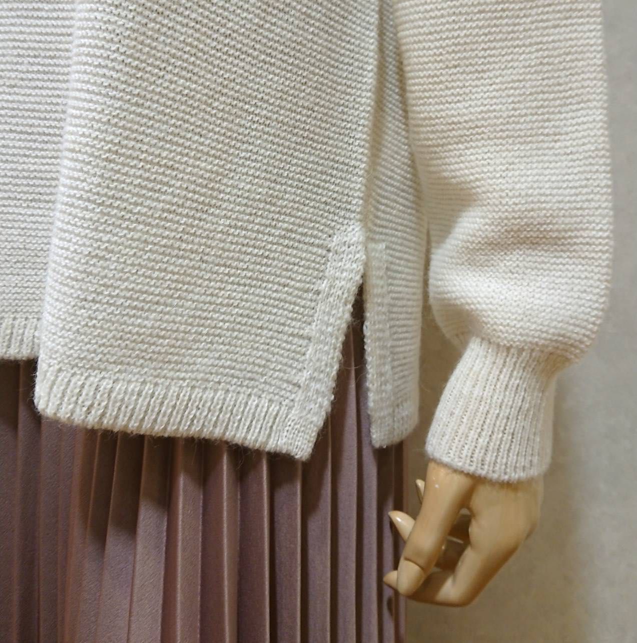 切り込みからチラッとボトムが見えるのが魅力!!是非、プリーツスカートなどとあわせていただきたいです!♩