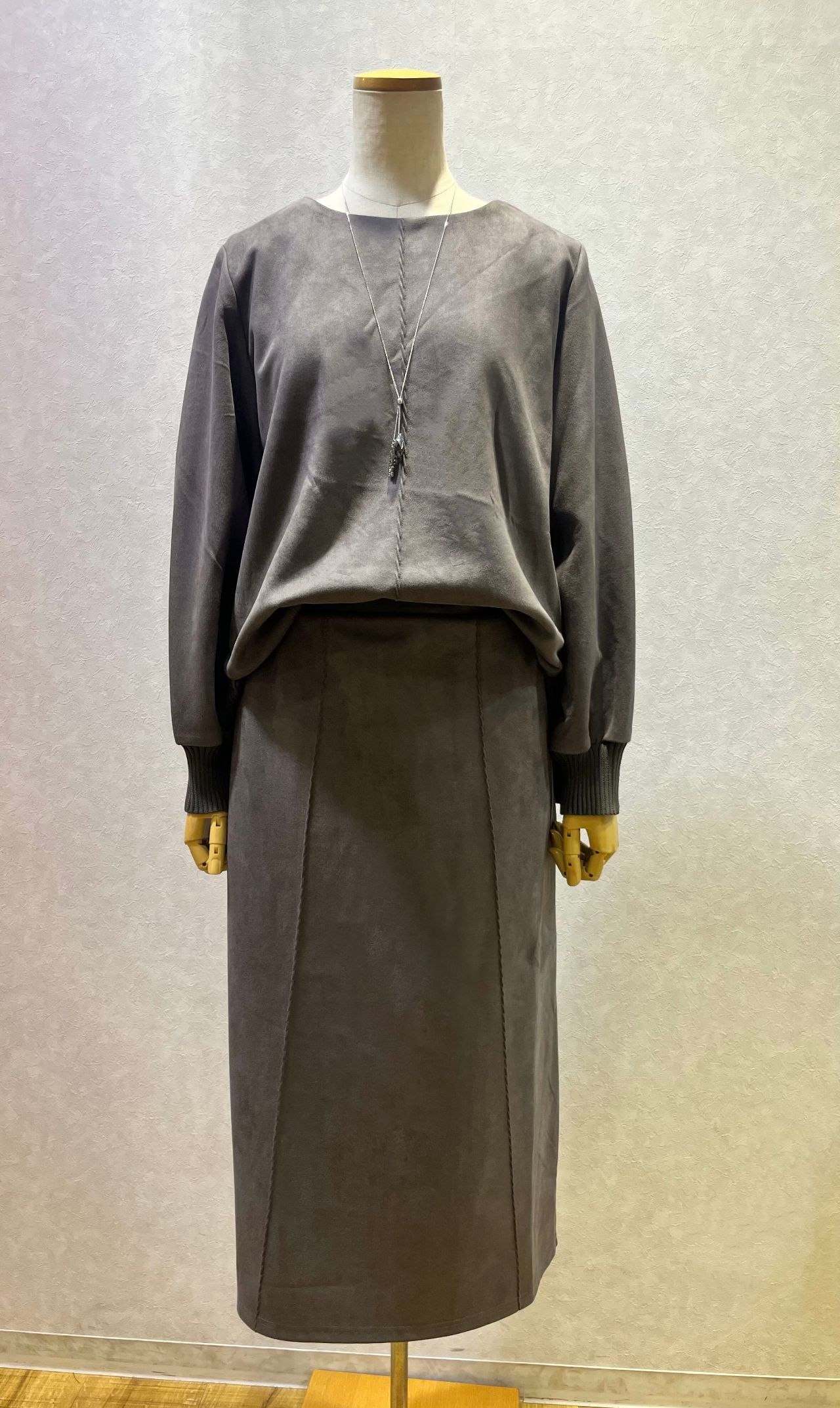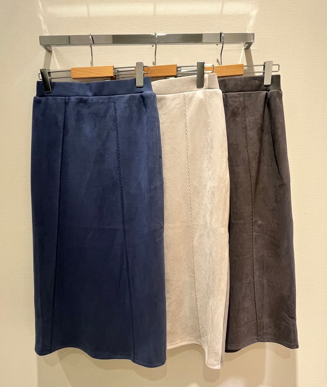 スエード+リブ 切替スカート