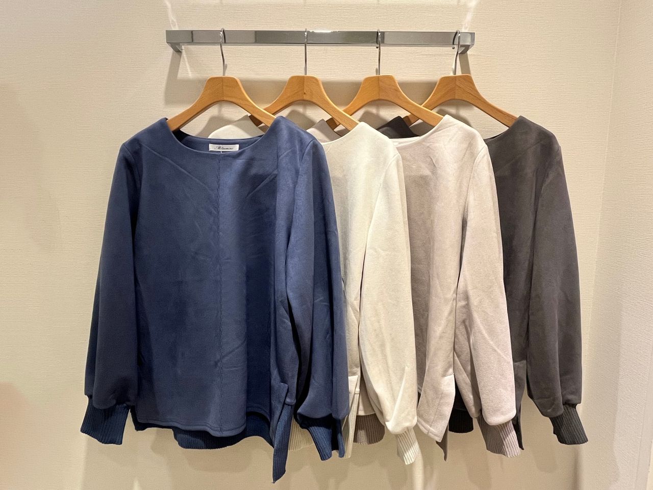 スエード+リブ クルーネックプルオーバー