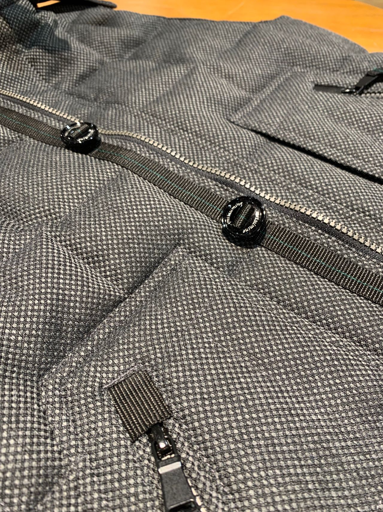 ホップサップ生地の特徴は、糸を撚って強くし、粗めに織り上げています。通気性があって、しわにもなりにくいです。撥水加工をしてますので、多少の雨でも気にせず着用できます。