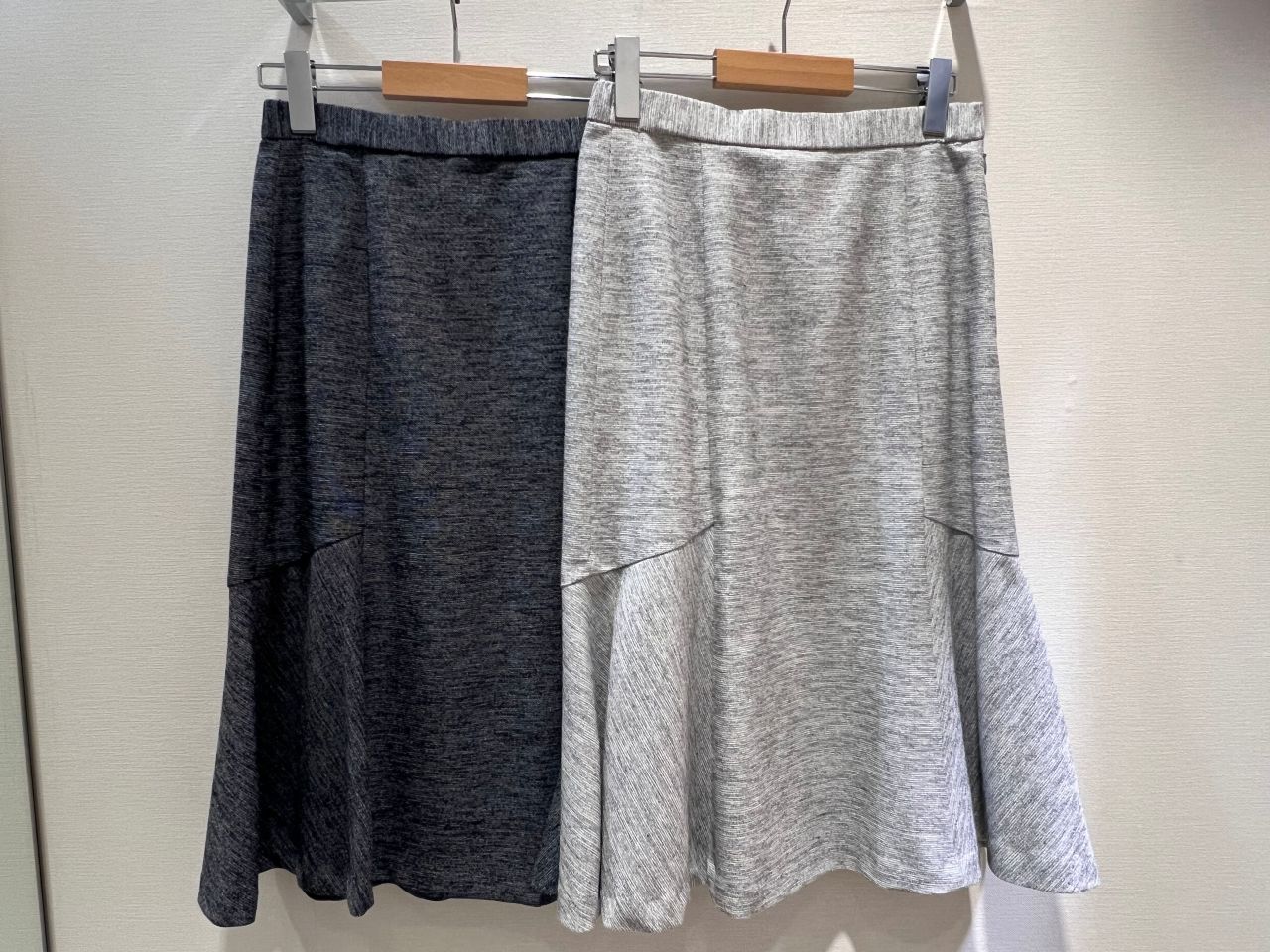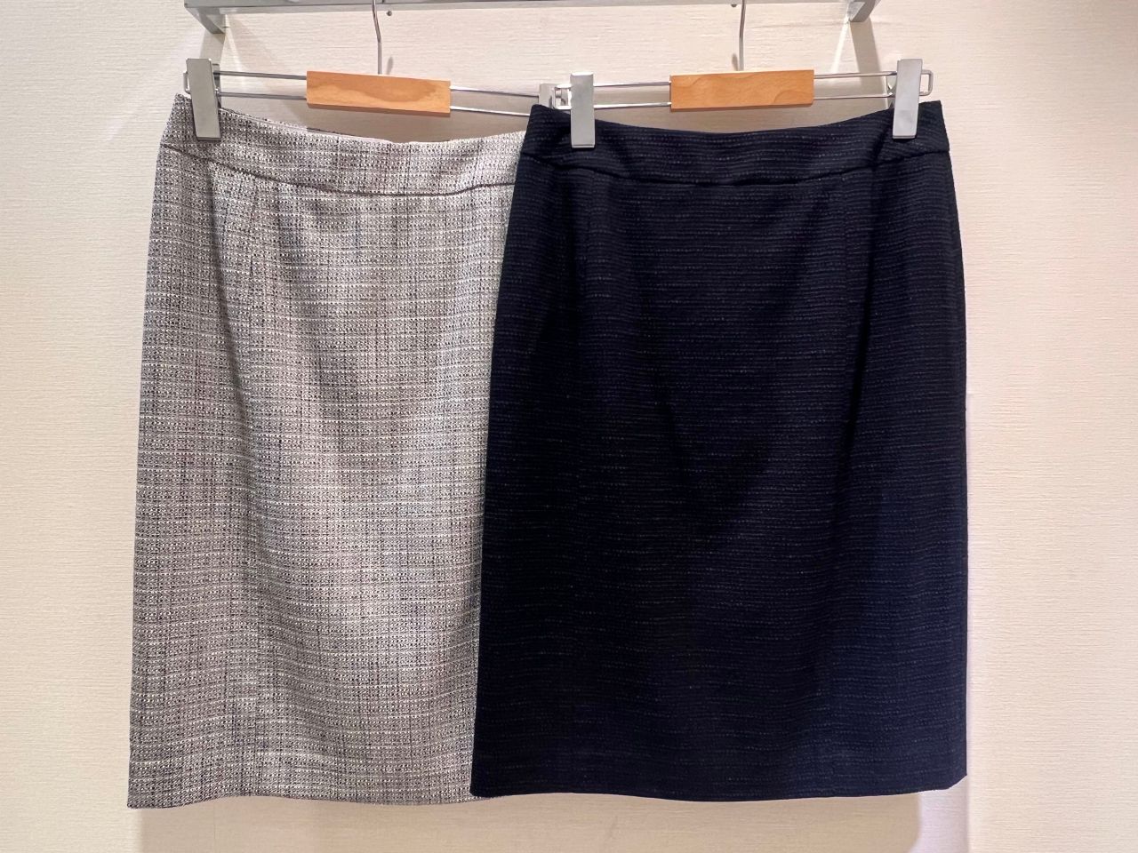 スカートはタイトの形ですが、後ろゴムで上下共にストレッチ性素材になっております!膝丈なのも嬉しいポイントです♩