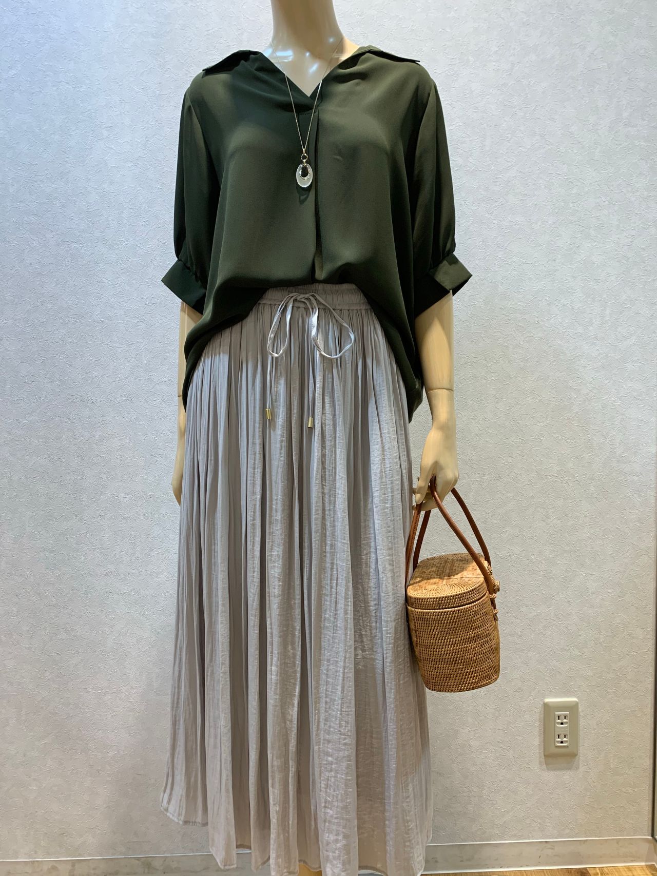 今流行りのプリーツスカート、ロングスカートなどと合わせて着ていただくのがおすすめですよ!⭐︎