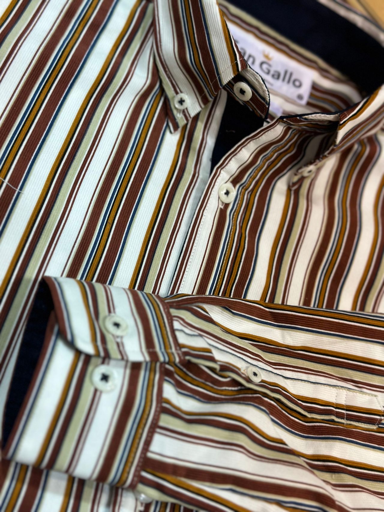 上品なコーデュロイ素材にストライプ柄を配した秋冬定番のアイテムです。