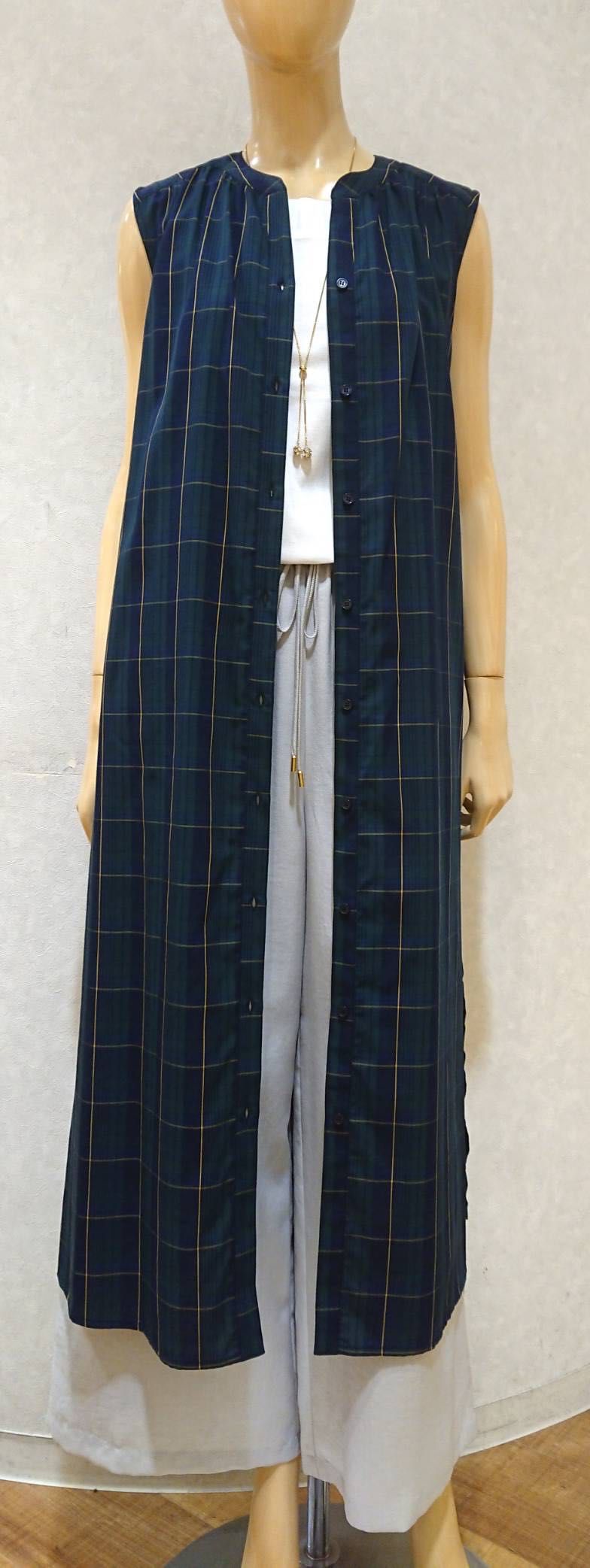 シャツワンピースは前を全て開けて ジレとしても大活躍ですね!