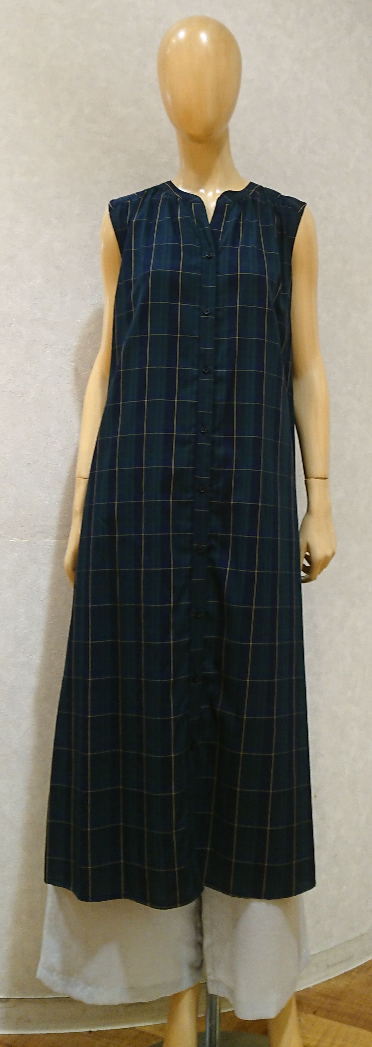 綿チェック 前開きフレンチ袖ワンピース