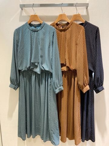 ダイヤ柄 ラッフルスタンドワンピース
