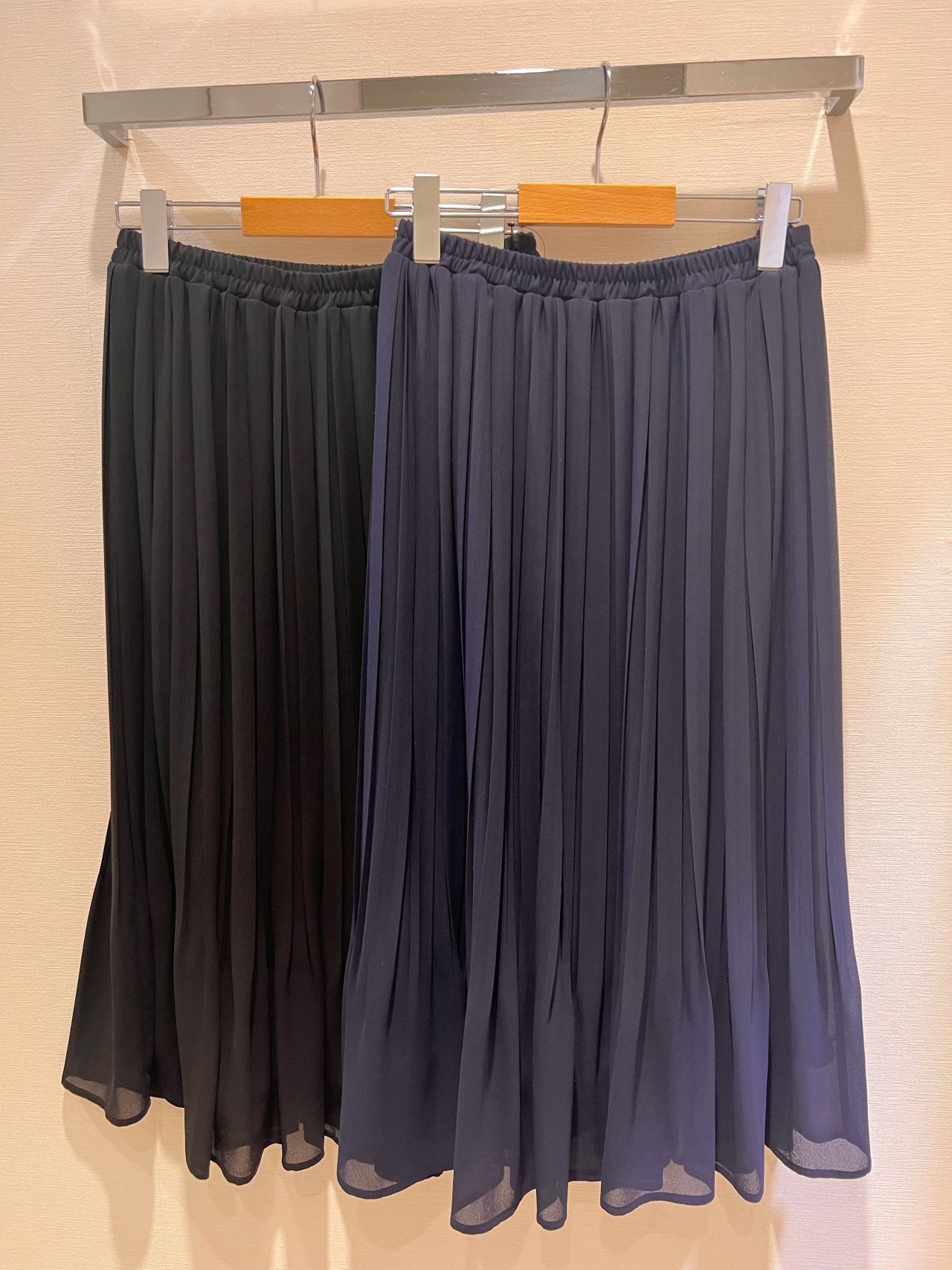 プリーツスカートは、季節問わず履いていただけて普段使いも可能です。