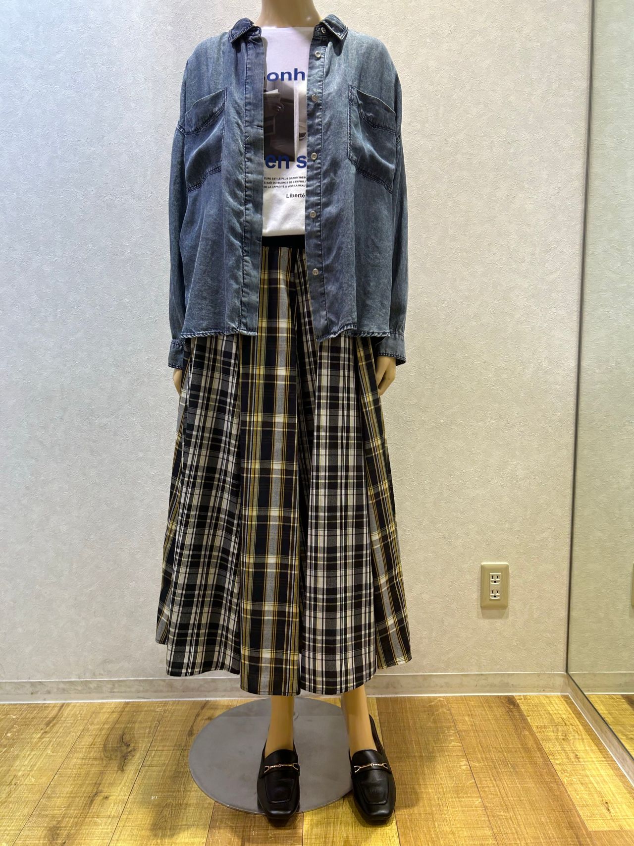 チェックスカートとのコーディネートに使用したこちらのデニムシャツは、
