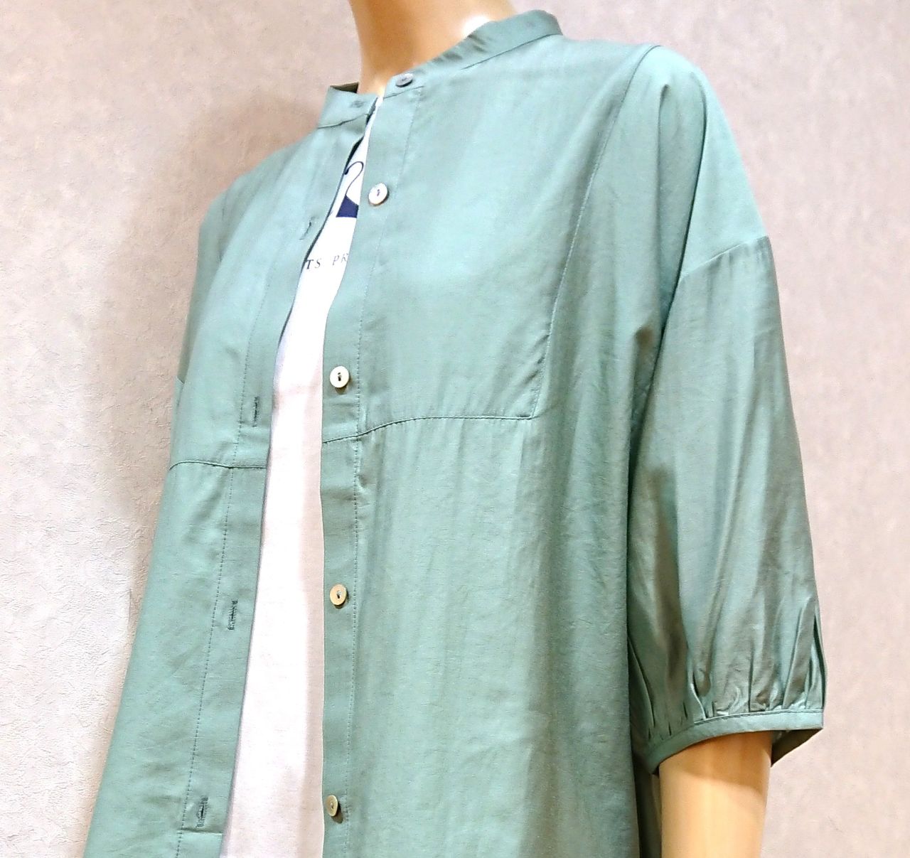 透けない5分袖ですので長くお楽しみいただけます。