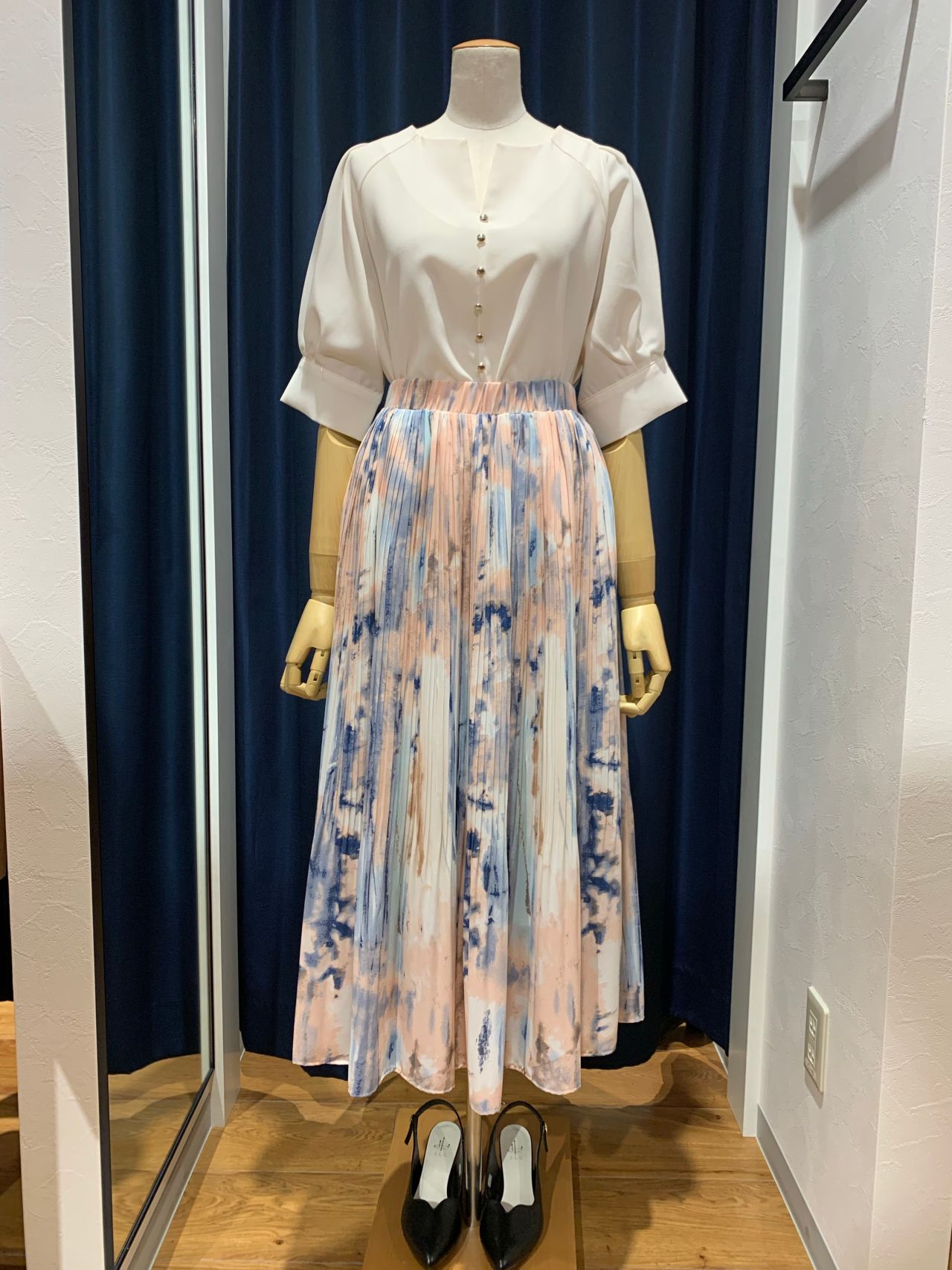 ウォーターカラー消しプリーツスカート