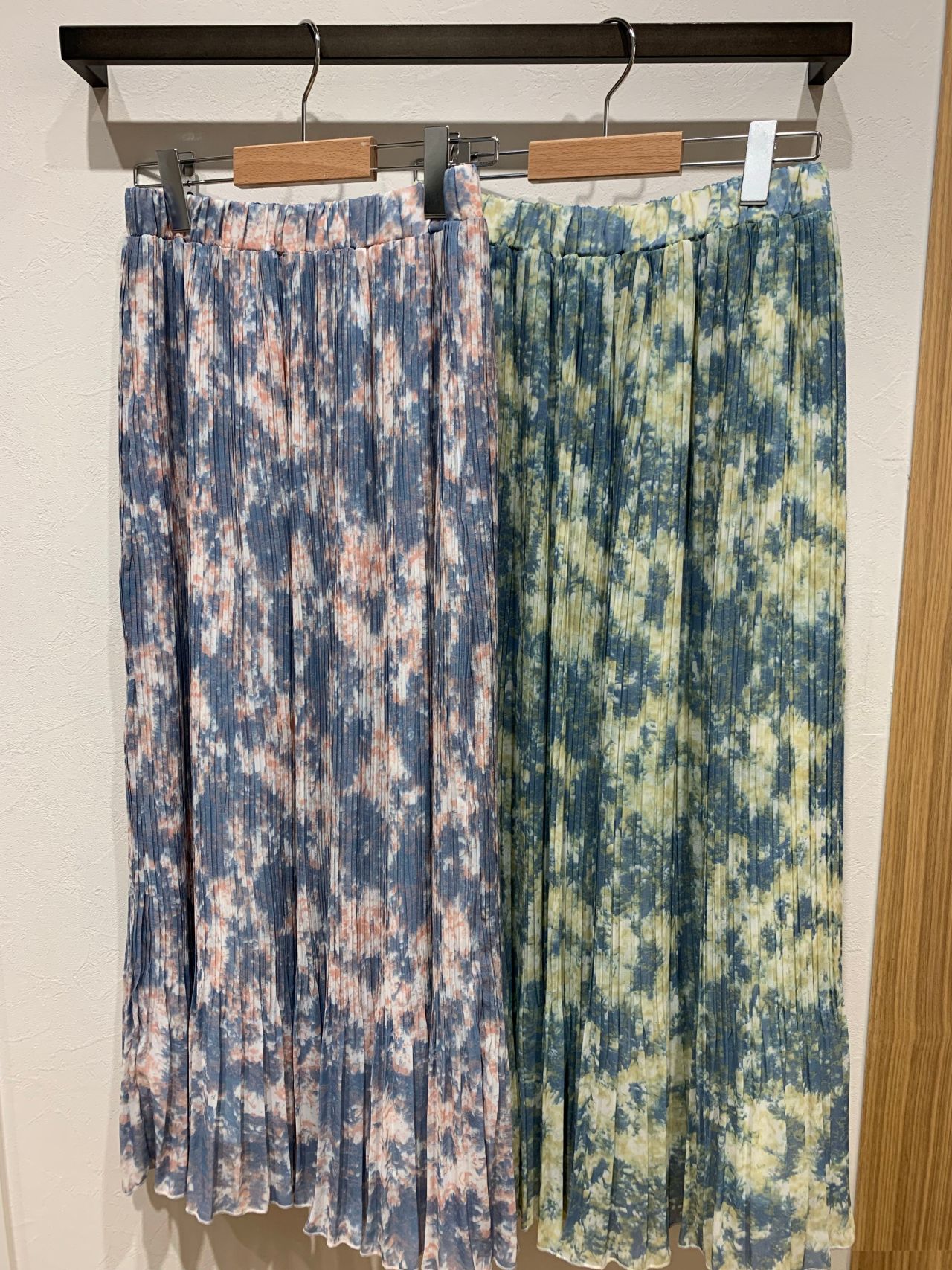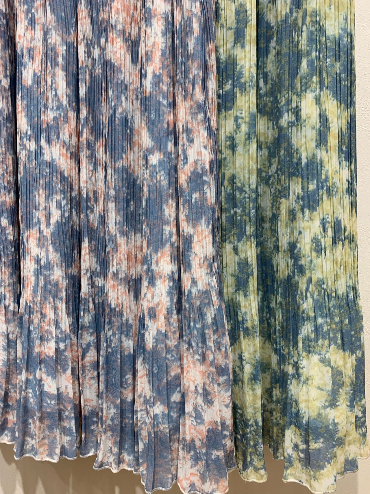 今回は、絞染め風スカートを二枚ご紹介します!