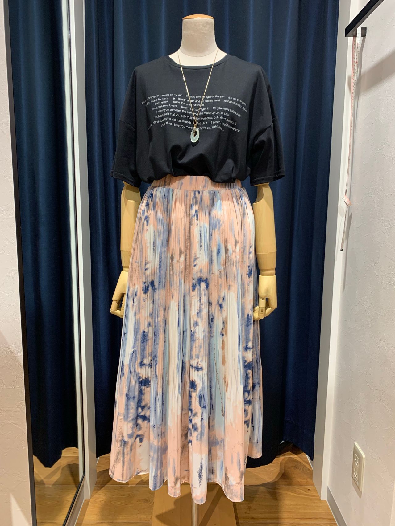 (二枚目の絞染め風)のスカートは、