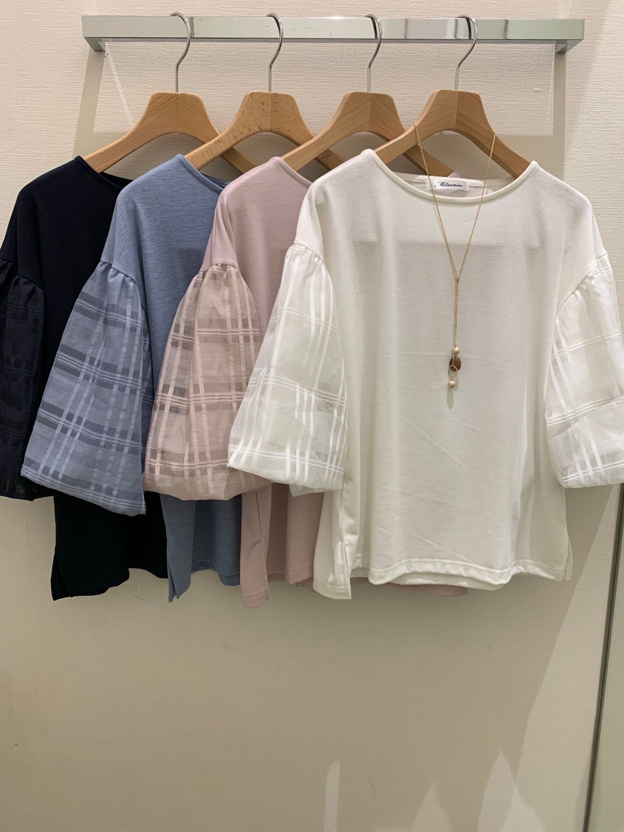 袖チェックシースルーバルーン