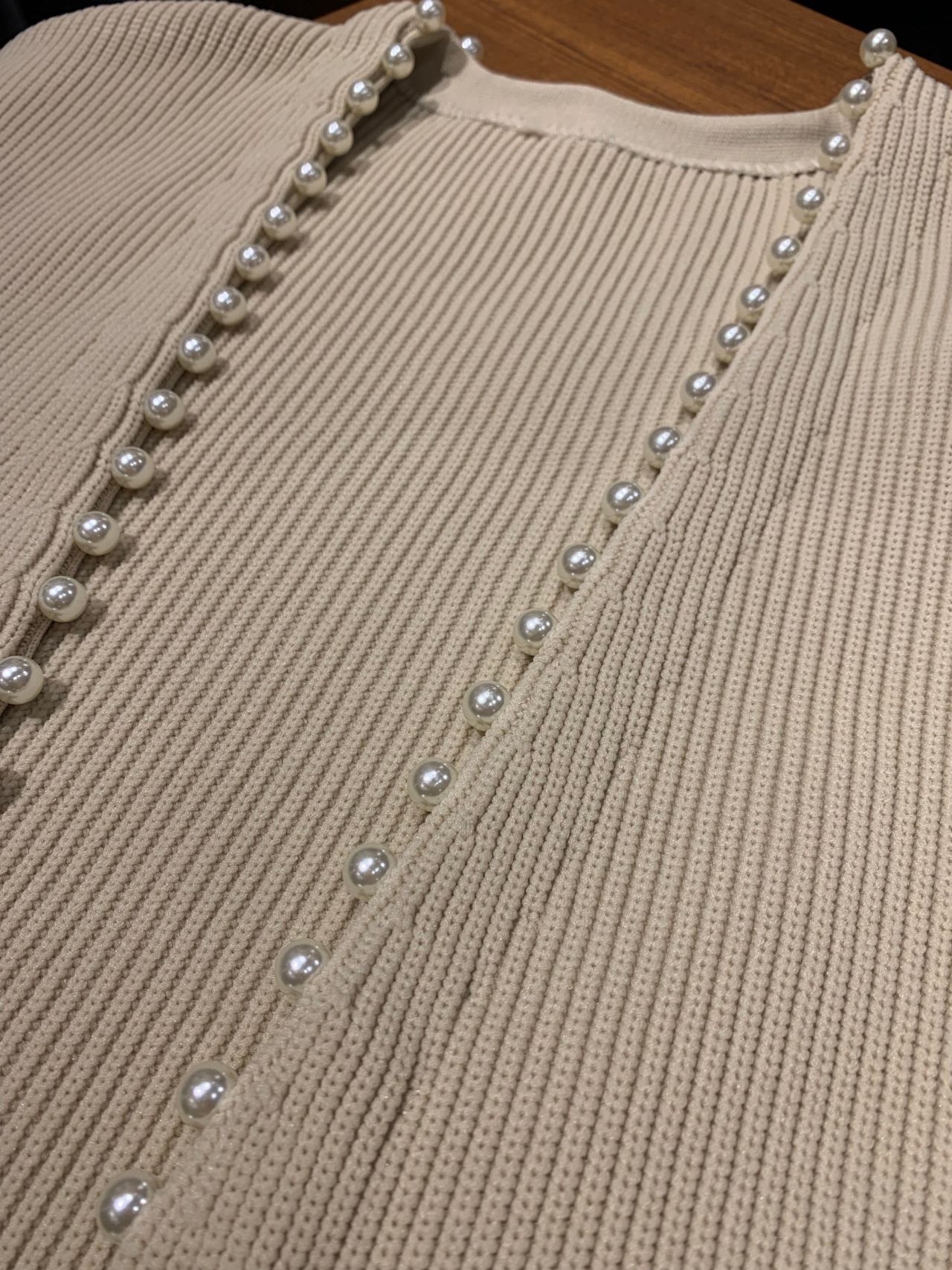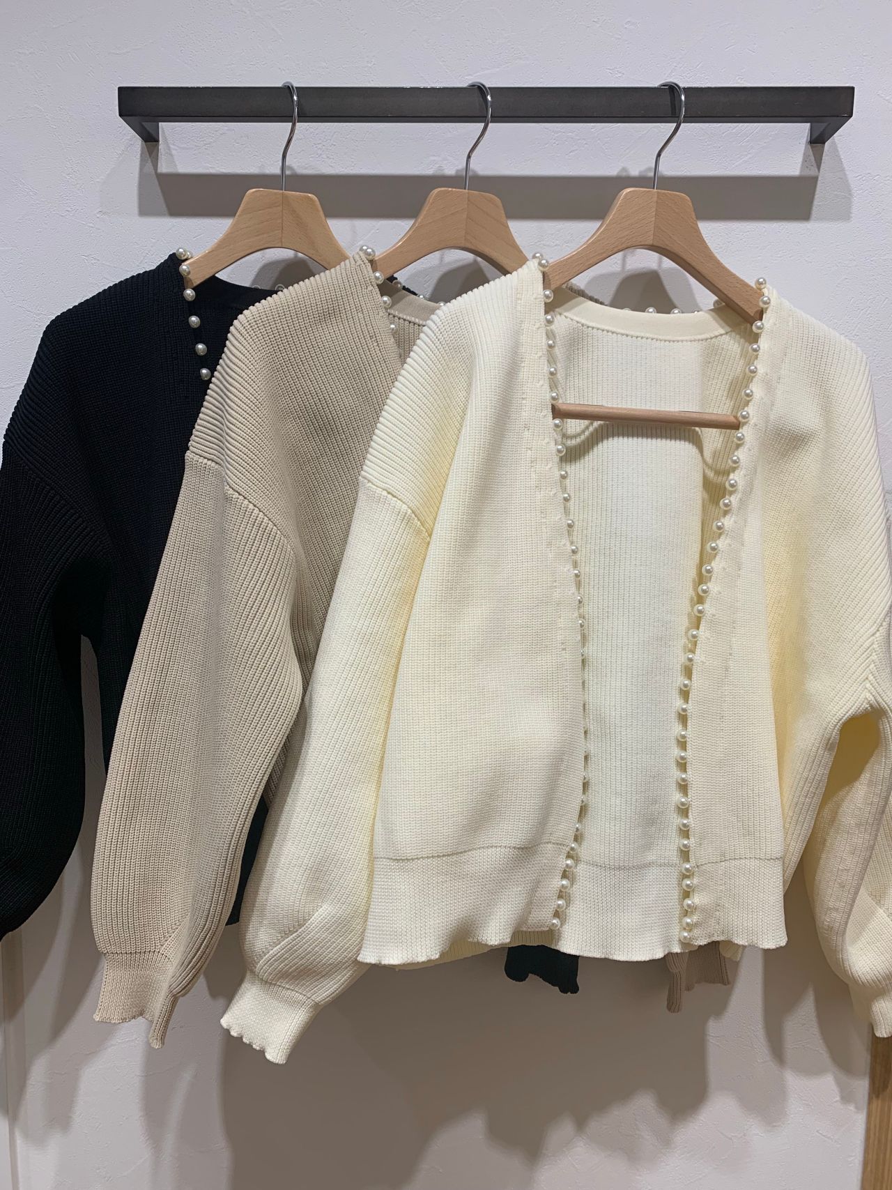 スポンジニットパール付き畦カーディガン