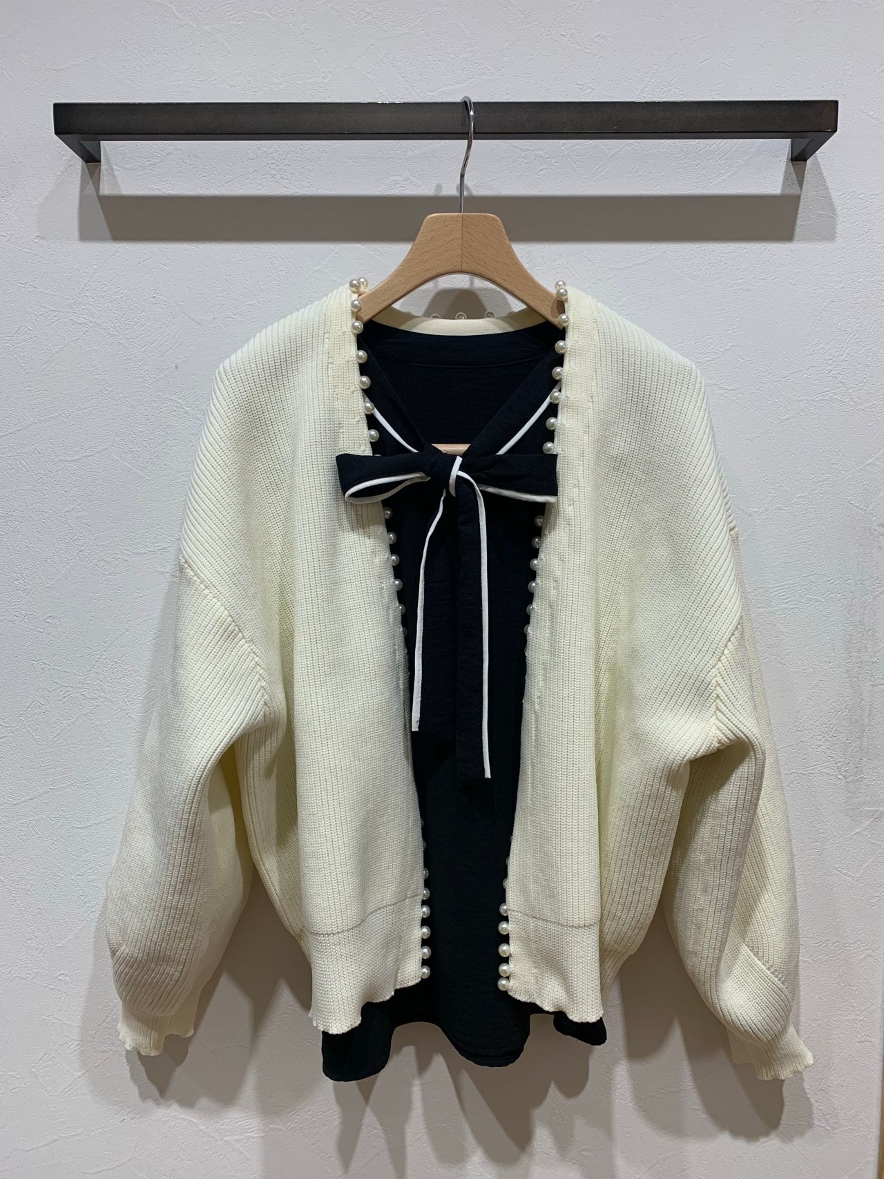 前端のパールがポイントのカーディガンです♪