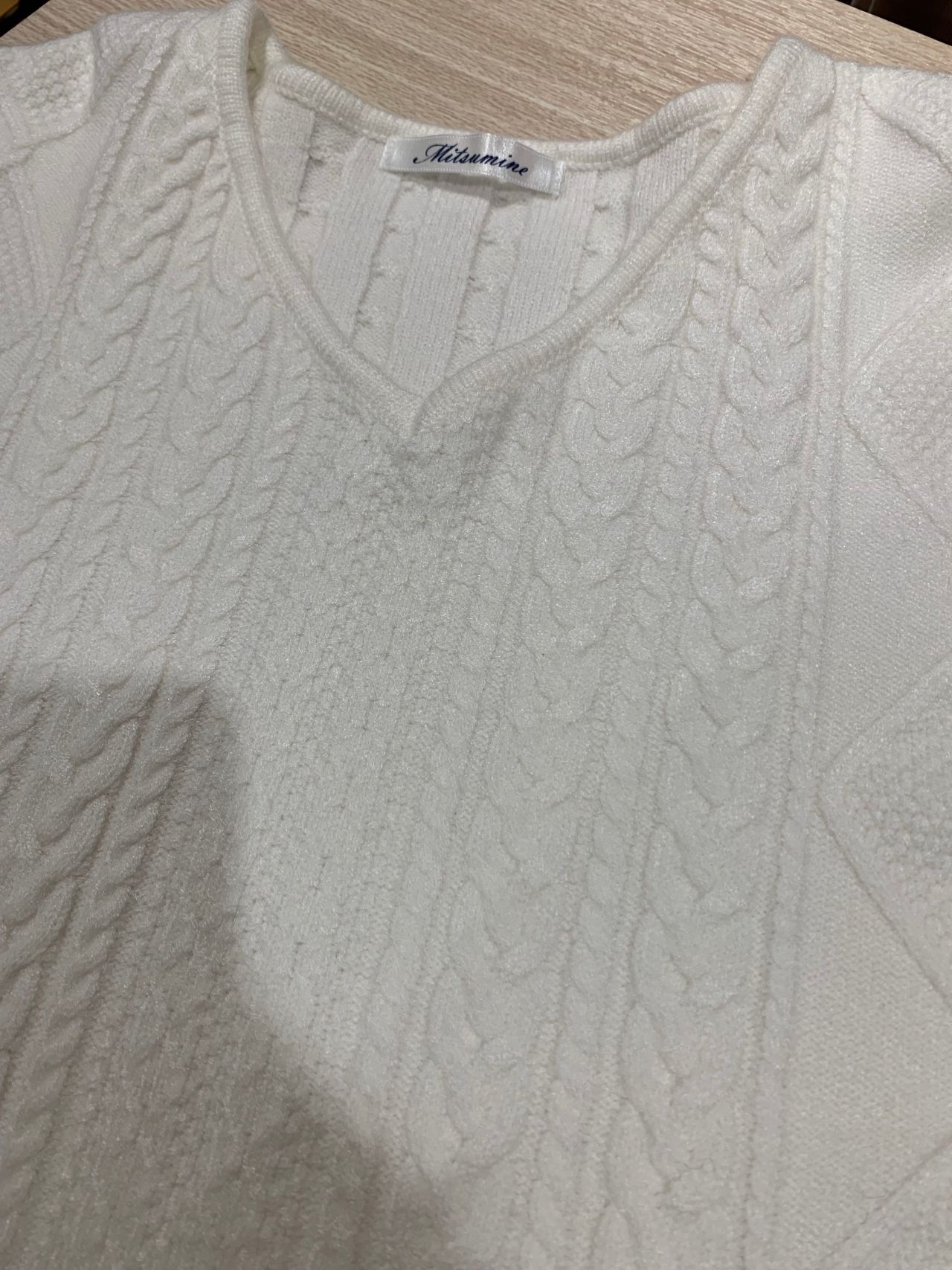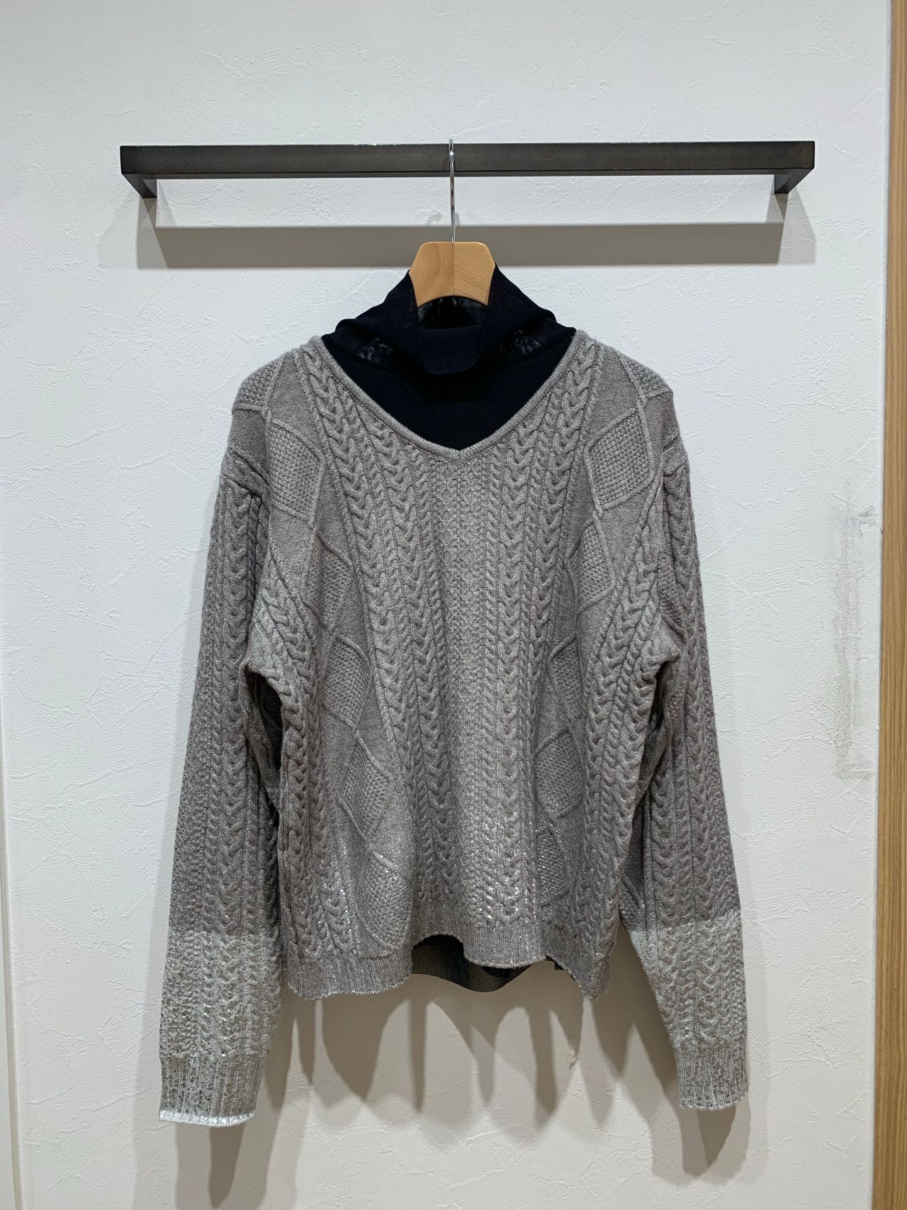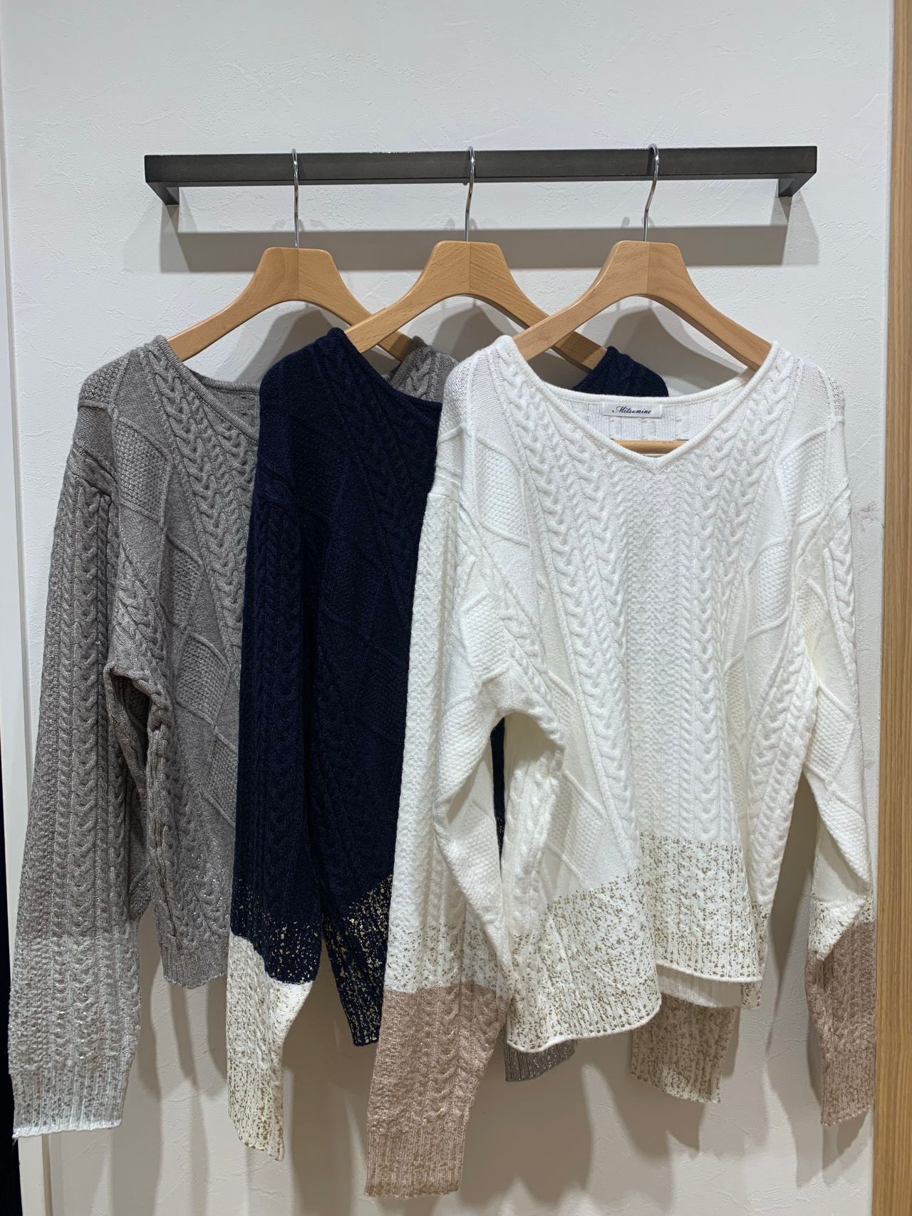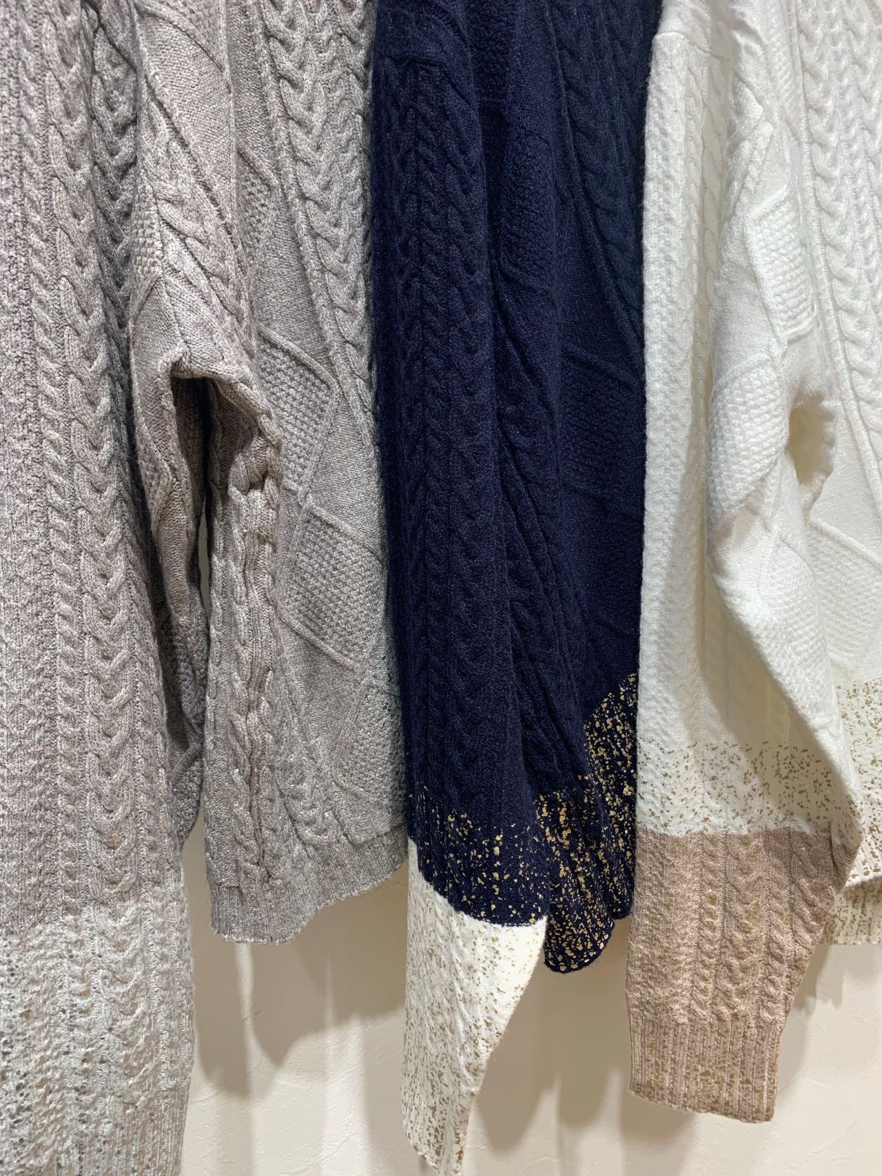 また、前身頃からお袖にかけて編み地に変化があるデザインが、